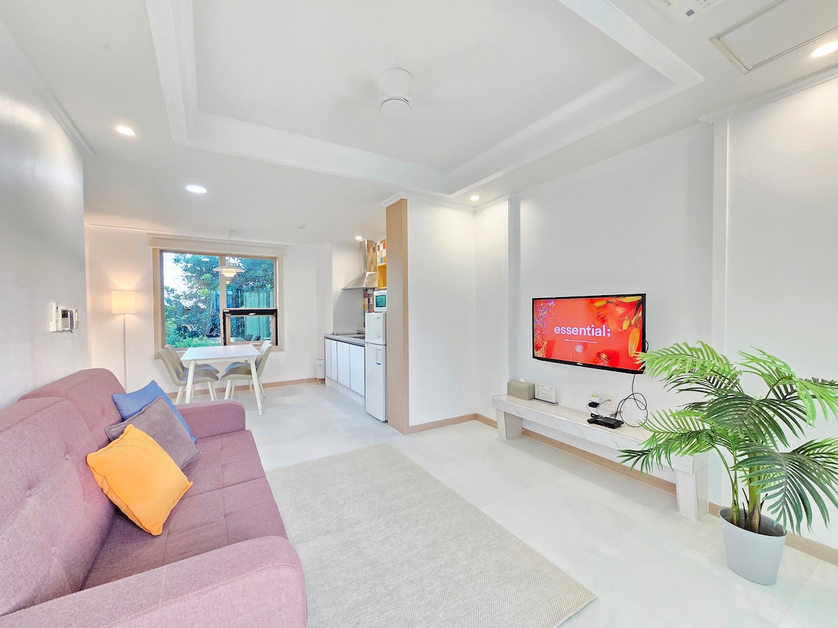 제주 서귀포시 중문관광단지에 위치한 호텔형 숙소입니다.(오션뷰) 제주바다와 베릿내오름을 한 눈에 내려다보는(해발83m) 탁 트인 전망을 가지고 있으며, 침대에 누워서 일출과 일몰을 감상하실 수 있습니다. 관광, 휴식, 레저, 쇼핑 모두에 적합한 뛰어난 위치를 자랑합니다. 중문우체국 환승정류장에서 도보 2-3분 거리로 대중교통이나 카셰어링 이용이 매우 편리합니다. 전통시장, 인기 음식점, 대형마트, 카페, 도서관, 수영장, 빨래방 등 각종 생활 편의시설도 모두 도보거리에 모여 있고, 차량 3~5분 거리에는 제주국제컨벤션센터, 면세점이 위치하고 있습니다. 일일이 열거하기 어려울 정도로 주변에 먹거리, 볼거리가 많은 곳입니다. 또한, 색달해변, 베릿내오름, 천제연 폭포 등 천혜의 자연경관도 가벼운 산책으로 다녀오실 수 있고 숙소를 나와 바로 올레길 8코스 트레킹을 시작하실 수도 있습니다.
