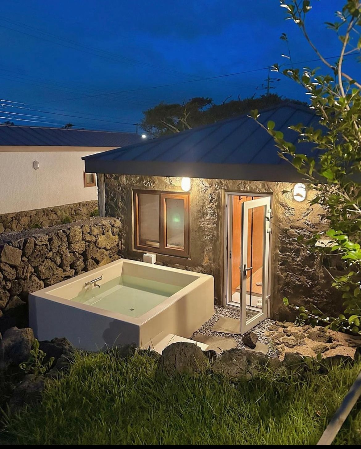 全年开放的温泉按摩浴缸+私人影院+黑胶音乐+自助烘焙早餐 房屋内部由四个独立空间组成: 房间1、2:配有大床的卧室 房间3:配备LG投影仪和音响的专属影院 房间4:与厨房分开的用餐区 最多可入住5人(包括婴幼儿),建议4位成人入住(不可5位成人)。 距离城山日出峰仅10分钟车程,沿海公路驾车风景优美。 在济州自然中,享受片刻宁静与悠闲。 结束一天的旅程后,在户外按摩浴缸中放松身心, 然后在私人影院里看电影,听着黑胶唱片,喝上一杯冰啤酒。 这是属于你的特别假期空间, 远离城市喧嚣,尽情享受属于自己的静谧时光。