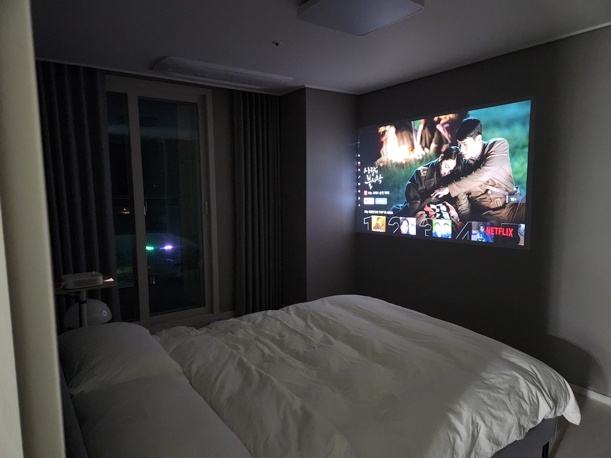 From the terrace, you can fully enjoy the ever-changing beauty of the East Sea, including the sunrise and sunset, with unobstructed ocean view. To enhance your stay, we provide Netflix w/ 65" TV and Harman Kardon Bluetooth speaker. If you connect the game console, you can enjoy over 3,000 nostalgic games. We have various lighting and blankets prepared to create a romantic atmosphere indoors and outdoors at night. For a comfortable sleep, we provide hotel-style bedding and blackout curtains.