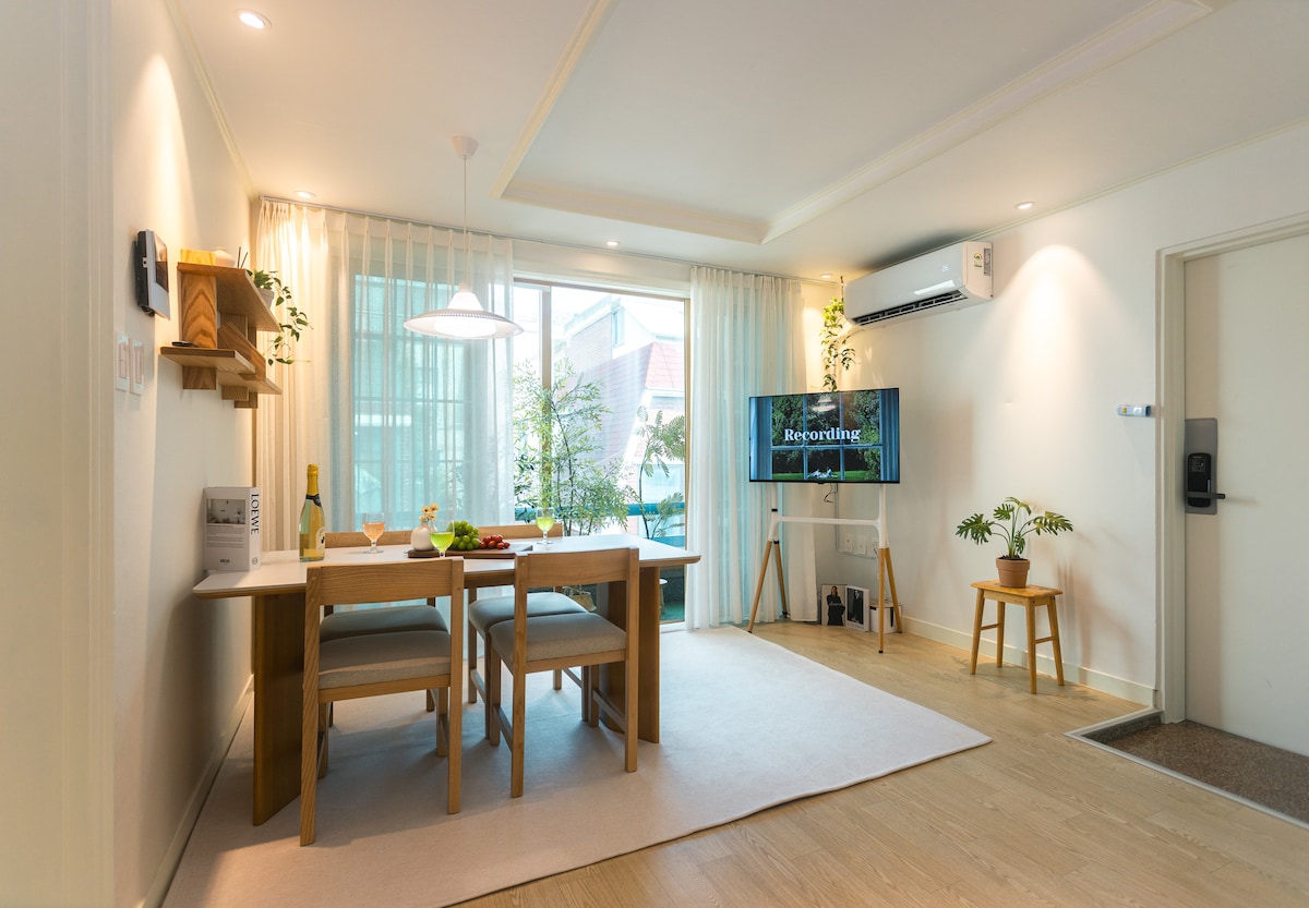 중심부에 위치하면서도 조용한 숙소에서 편안한 시간을 보내세요. 110인치 빔 스크린/넷플릭스,디즈니 구독 중입니다. 시청가능!! 넓은 테이블에 앉아 작업에 몰두해보세요. 빔 스크린과 함께 여유를 즐겨보세요 . ---다른방 분리 취침 원할시 미리 말씀해주시면 테이블방에 싱글침대 준비해드려요-- ---4인이상, 퀸 사이즈 매트리스 토퍼 제공. table room 에 깔고 취침가능 .가족이 한 방에서 같이 취침하실 경우 ,미리말씀해주세요. *주차는 기계주차.(무료, 숙소와 도보 5분 안되는 거리) (주차 허용 제원 : 길이 5200mm, 넓이 1900mm , 높이 1550 mm_SUV 불가)미만 차량만 입고 가능합니다. 차량 사이즈를 확인해주세요. **11시 이후 빌라 다른 세대들이 취침할 시간입니다. 조용히 해주셔야 합니다** 밤늦도록 파티, 이벤트 금지 숙소입니다. ■ 본 숙소는 미스터멘션 특례를 적용받아 내국인 공유숙박 합법 업체로 등록되어 운영되고 있습니다. ■