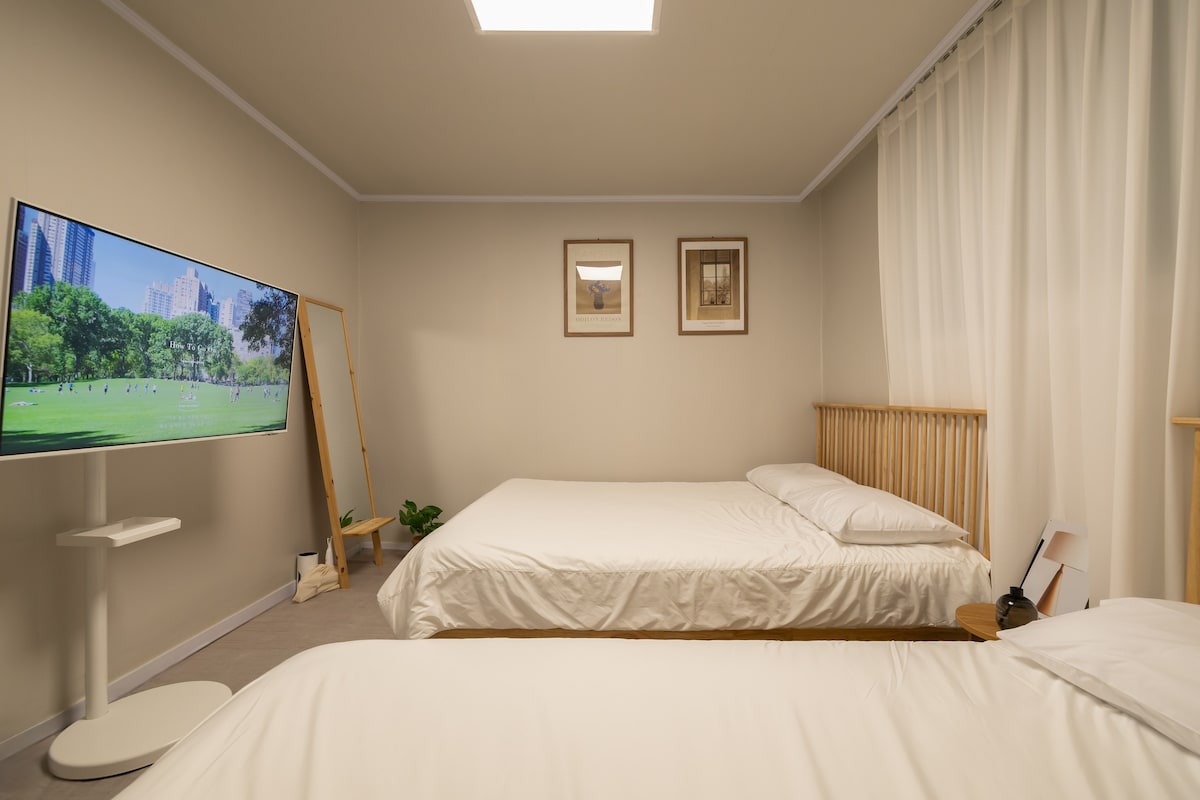 圣水站/3房/4张大床/1楼/机场巴士4分钟/汉江步行5分钟/首尔森林公共交通15分钟/Netflix•投影仪