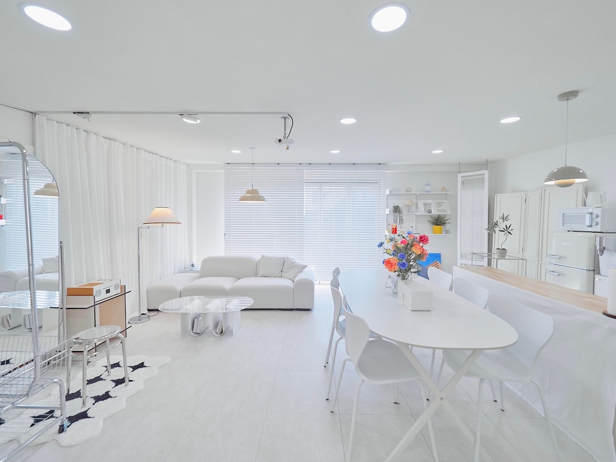★大空间(适合6~7人一下。最多10人) ★屋塔园子。烤肉聚会 ★弘大地区的超级中心★ ★机场地铁直到★ ★从地铁站走1分到家★ ★美丽的弘大地区风景★ ★无限高速WIFI★ ★干净纯白床单★ ★English & 中文★ 英文舒服点。但中文也可以打;可以说 ★3点入住。11点退房★ ★小行李保管? 用楼道的保管箱。 ★大行李保管? raontravel.com。地铁站5号出口。理想的位置。 我家 - 保管公司 - 机场地铁。 ★没有公用空间. 屋塔园子是管理空间为了设备安全. ★4楼。楼梯★