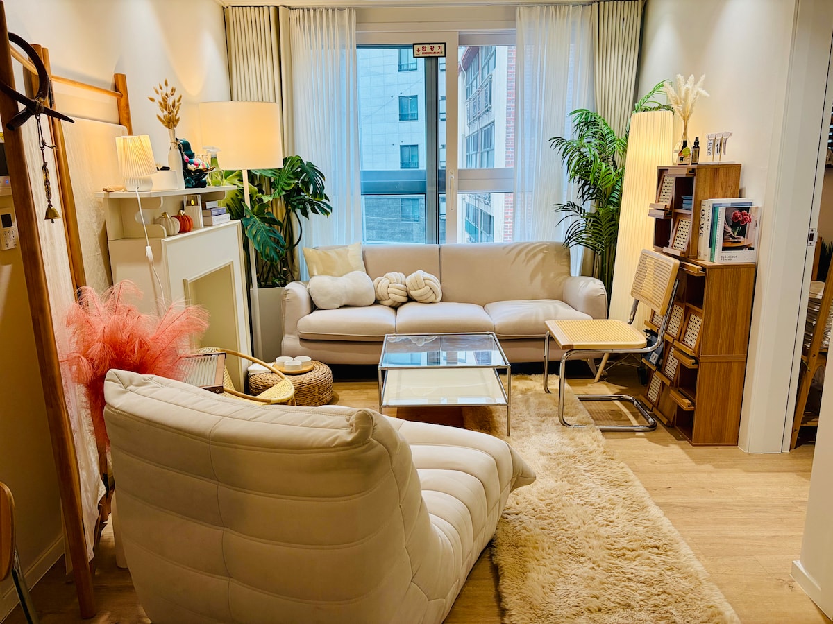 {New}设计师打造的房源 距离弘大 3 分钟 2 间卧室 3 张 1.8 米宽双人床{弘大、光化门、明洞、汉江}