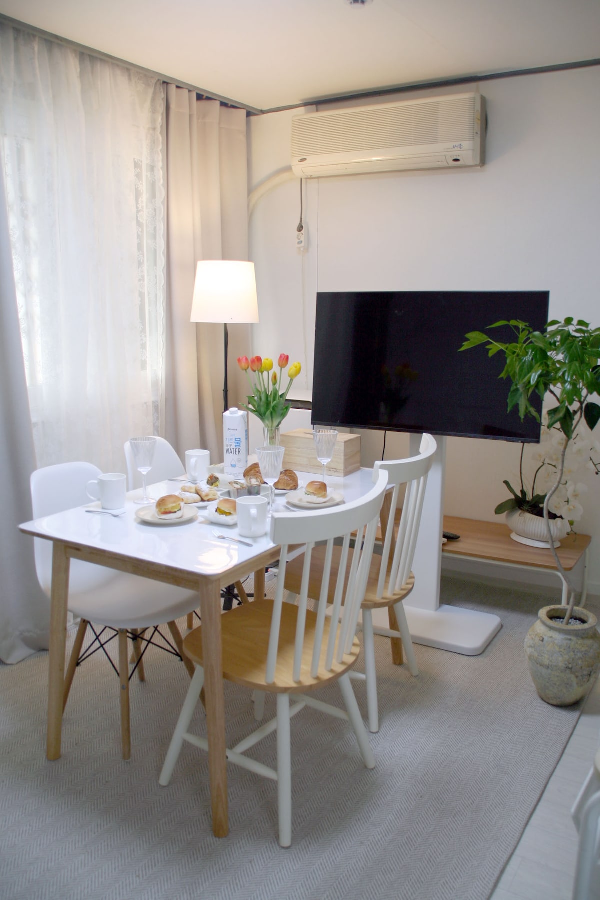 新村站 5 分钟 • 弘大、明洞、景福宫 • 干净安静的房源 • 行李寄存 • 一楼专用 • 3 间客房 • 4 台空调