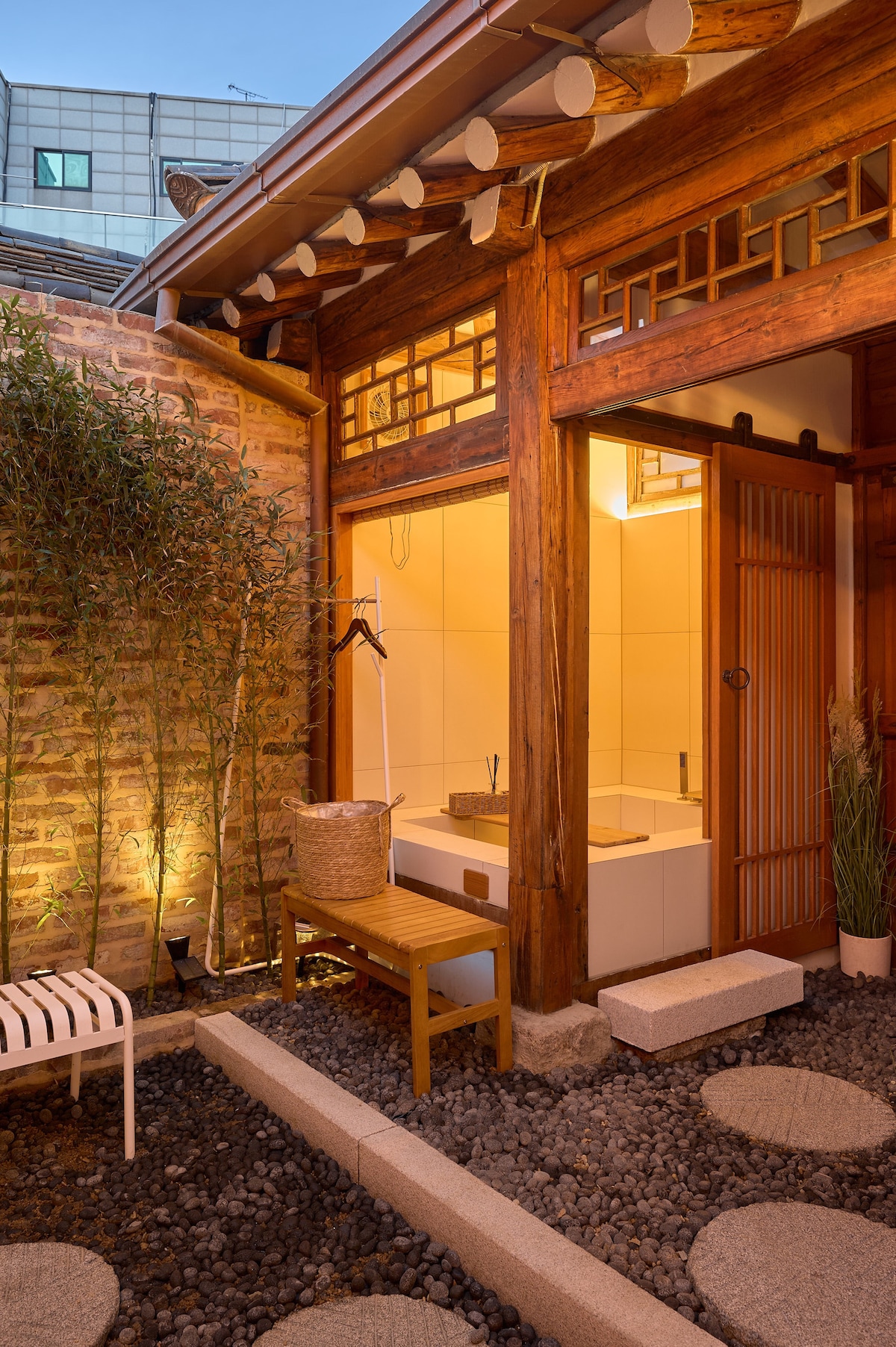 Gotaek (고택) means an old hanok, typically over 100 years old, The Classic-Goteak Seochon chosen by world-renowned artist Nicolas Party for a 6-week, and Filming locationn for famous Korean movie [Architecture 101]. A private luxury Hanok hotel with an outdoor jacuzzi, exclusively for one group, in the heart of Seoul. A stunning architectural gem preserving the charm of traditional Hanok while blending modern sophistication. Its rare loft-style design features state-of-the-art amenities