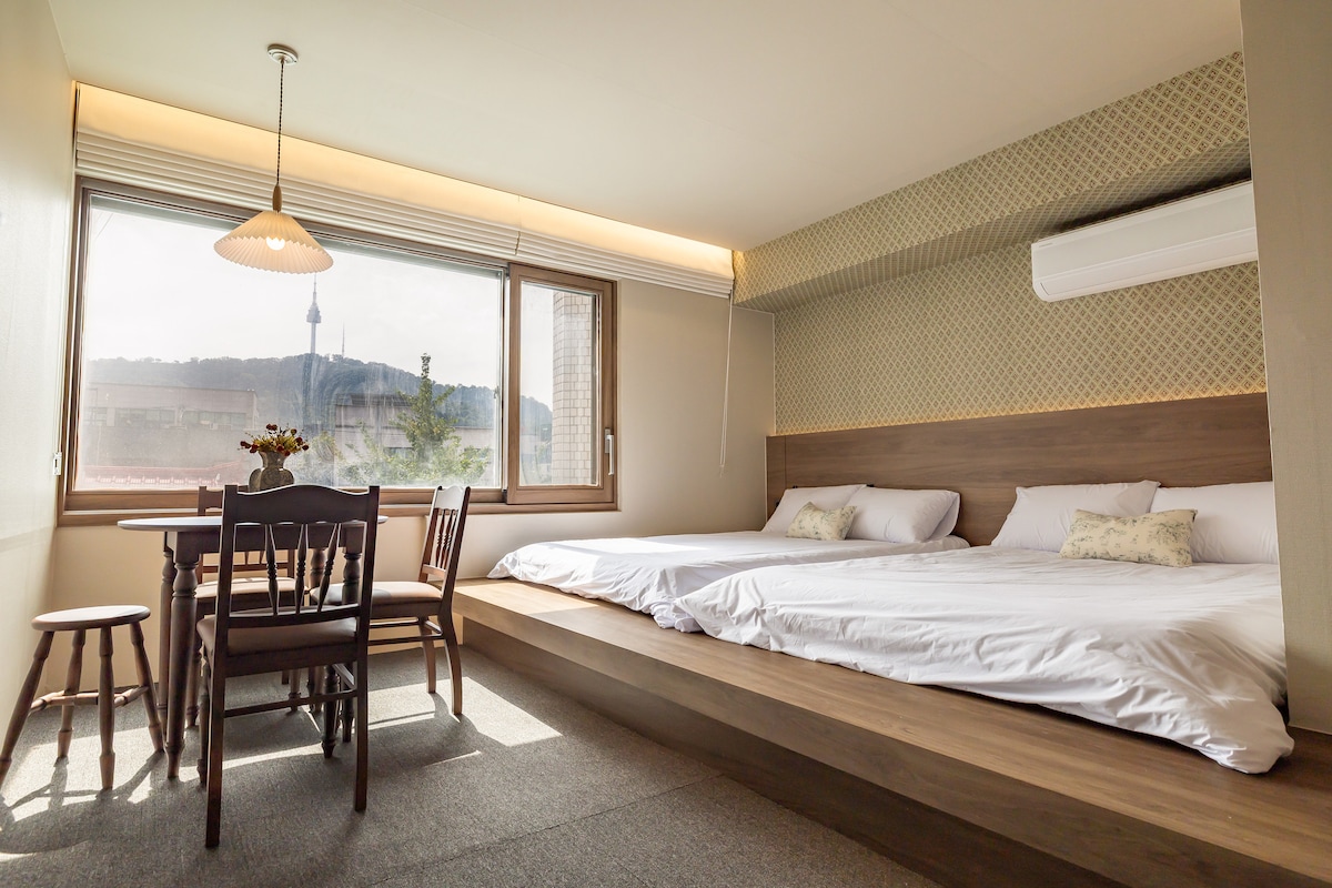 V4/충무로역도보3분/남산뷰/명동/2BED/개별화장실/빈티지감성숙소/익스테이/VIP4인룸