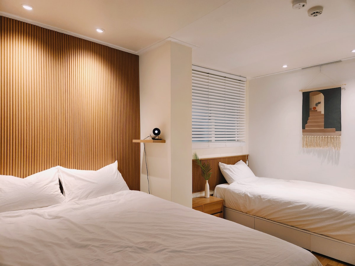 [신규20%할인] 홍대역 5분/큰3룸/ CoZy/호텔침구.