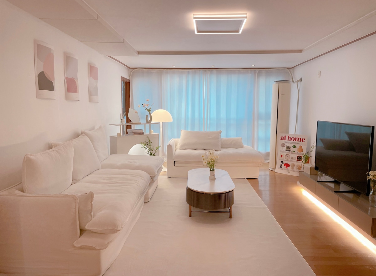 "Please read the review." 在帕里达斯广场度过愉快的韩国之旅吧~ 这是一个适合与朋友或家人一起住宿的安全完美之地。 ♥ 概要 ♥ - 从首尔站15号出口步行3分钟 - 新建筑(2023年5月开业) - CCTV监控非常安全(走廊、电梯、入口) - 电梯 - 3台空调(客厅、卧室1、卧室2) - 1台空气净化器 - 免费停车服务(1辆车) - 从仁川机场直达 - 平坦的地面,没有坡道 - 美丽的室内装饰 - 可以看到南山塔景观的屋顶 - 可观看Netflix和YouTube - 客房内高速WIFI