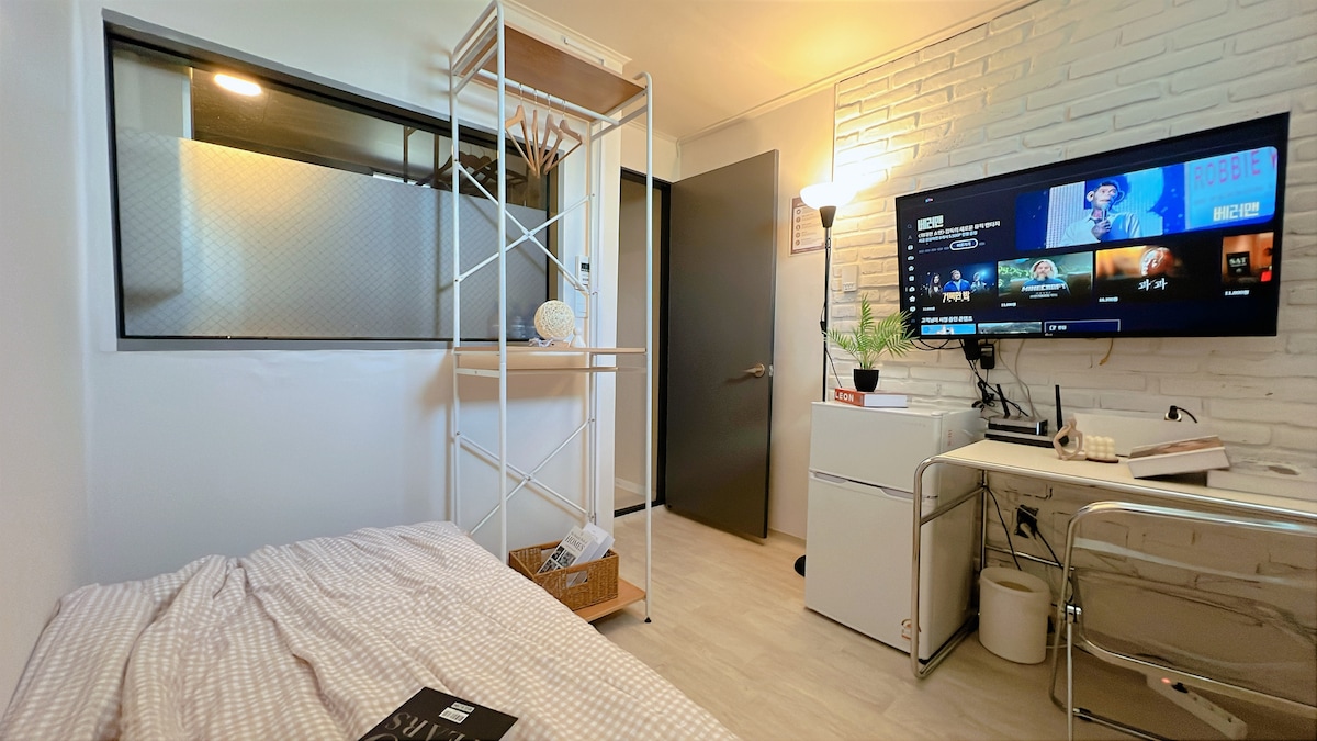 - 房间7坪,床135*200,书桌1200*1800,可以保管行李 - 具备可办公、可做饭的简单餐具,智能电视 50 英寸 - Wifi, 大衣柜, 大冰箱, 洗衣机, 晾衣架, 吹风机, 毛巾, 纸巾, 水 收费停车 洗发水、沐浴露、护发素、香皂 - 从仁川机场到宿舍正门乘坐机场巴士时56分钟(包括6分钟步行) - 从宿舍可以走着去的地方 大创(6分钟),OLIVE YOUNG(3分钟),时代广场(3分钟),汗蒸房(6分钟) -从宿舍坐地铁去的地方 (附近有 1 号线永登浦站、2 号线文来站、5 号线永登浦市场站) 东大门 DDP(41 分钟),汝矣岛汉江公园(21 分钟),清溪川(41 分钟),景福宫(39 分钟) 弘益大学入口站(24分钟),北村韩屋村(41分钟),明洞(36分钟),圣水洞(47分钟) 文来洞(12分钟),永登浦站是KTX停车站,去釜山等地方很方便。 清晨感受着从窗户照进来的温暖阳光 晚上坐在房间的窗边享受时代广场的夜景