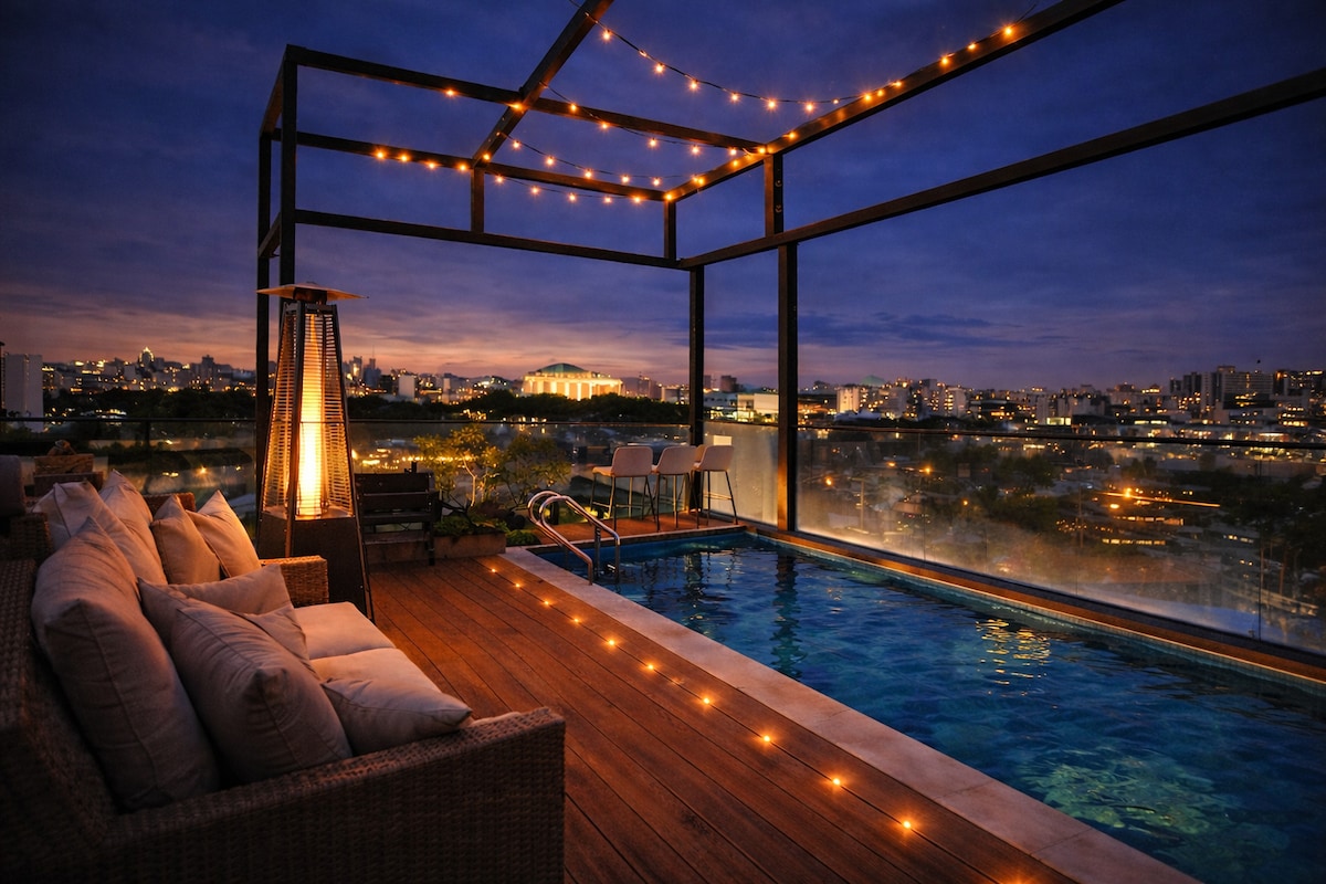屋顶泳池住宿
