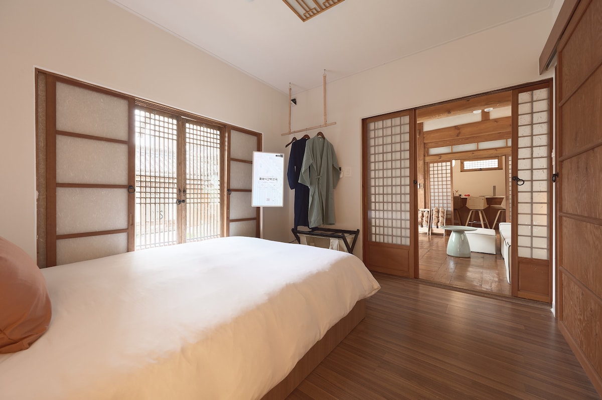 🌿 A Quiet Hanok Retreat in the Heart of the City — Where Nature Meets Comfort This beautifully restored traditional Korean hanok blends timeless charm with modern comfort. While conveniently located in the city, the home sits beside a small mountain and features a spacious private yard, allowing you to enjoy both urban convenience and natural tranquility at the same time.