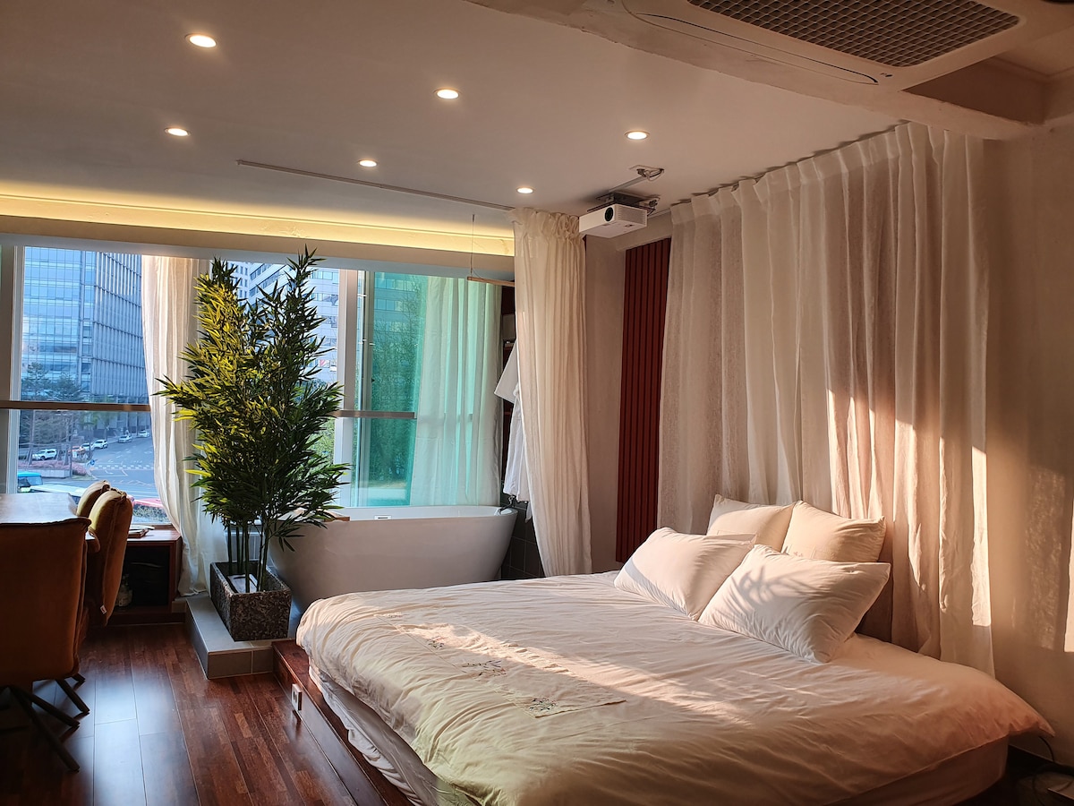 Seoul Station附近带热水浴缸的高分房源