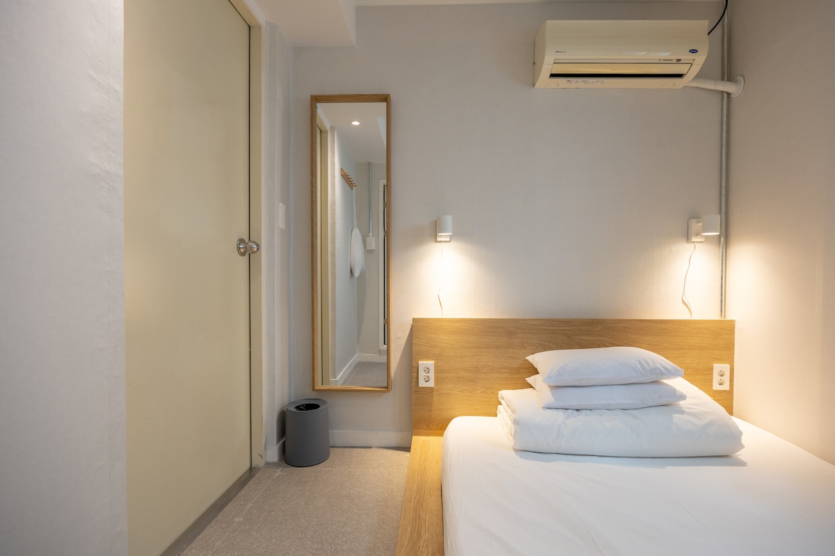 [NEW OPEN] ● STAY SAI 스테이사이 [1인실] -. 최대인원 : 1명 -. 혼자 머물기에 깔끔하고 아늑한 공간이에요. (개별 화장실 있음) -. 엘레베이터가 없으며 1인실룸은 1~2층에 랜덤 배정됩니다:) -. 핫한 광장시장 바로 앞, 지하철 종로5가역에서 도보 3분거리에 위치해요. -. 광장시장에서 맛있는 음식을 포장해와서 예쁜 공용부 공간에서 드실수 있어요. -. 숙소 이용객에게는 6가지 종류의 한국라면을 무료로 제공해요:) -. 간단한 조리가 가능한 예쁜 공용주방이 마련되어있어요:) -. 구비 가전 : 세탁기 / 건조기 / 냉장고 / 전자레인지/ 토스터기 / 조리도구 / 주방도구 / 각방의 에어컨난방시설 ● 호텔 베딩을 사용, 매번 살균 세탁된 깨끗한 침구를 제공해요. ● 매월 전문업체를 통한 정기 방역을 하는 안심 숙소에요:) ● 호스트가 직접 청소 관리를 하는 청결한 공간이에요.