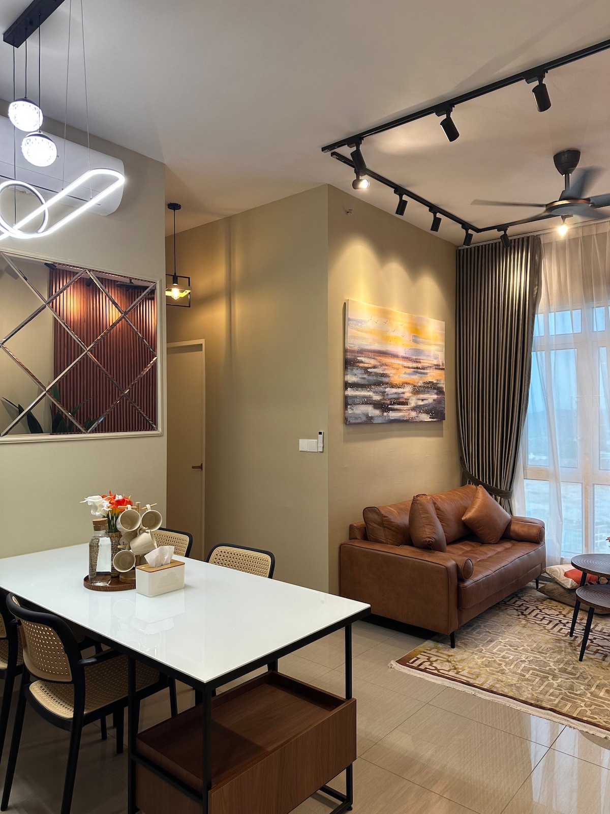 Our stylish, eco-friendly 1-bedroom garden view suite in Kanvas SOHO is perfect for couples, layovers, or weekend getaways. Just 25km from KLIA/KLIA2, and walking distance to Tapak Food Truck, D'Pulze Mall, Burger King, KK Mart, cafés & more. 🛏️ Cozy queen bed & sofa bed 🌿 Beautiful Putrajaya view 📶 High-speed Wi-Fi 🎬 Netflix 🏊♀️ Infinity pool 🌇Sky lounge & gym access 🅿️ Free parking 🚗 Easy Grab & highway access Enjoy a relaxing stay with modern comfort, nature, and city convenience.