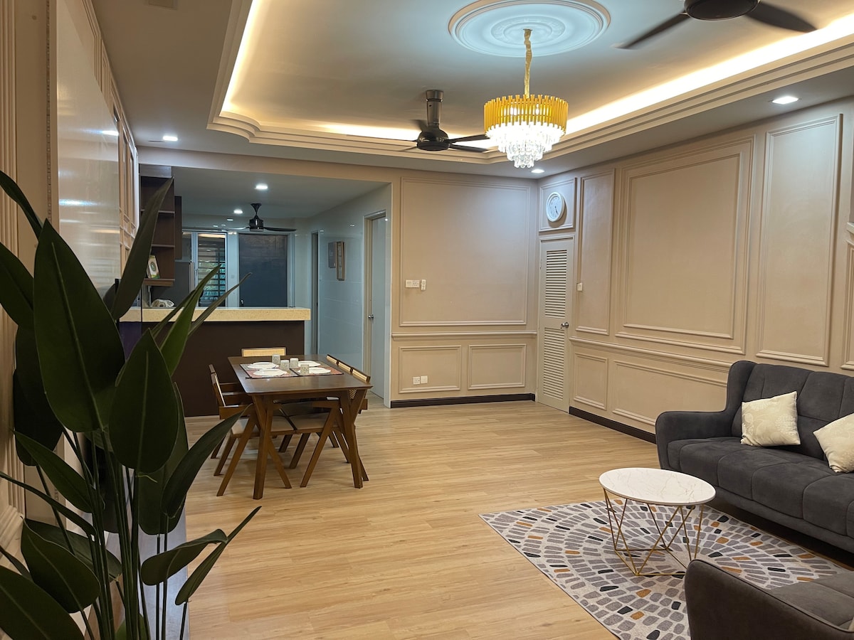 This house is a terrace house corner lot. We provide 3 rooms. Bedroom 1 have Super King Bed with Aircond . Toilet and water heater. Bedroom 2, Queen Bed with Aircond. Bedroom 3, 2 Single Bed. Provide Ceiling fan only. Others service , we have wifi Internet Cooking stove Rice Cooker Water filter Coway cold warm hot Electric kettle Fridge Iron board and iron Television Pot Dishes, cups, mugs Spoon, forks Hangers Free parking. 2 cars in porch. Others car outside area free parking