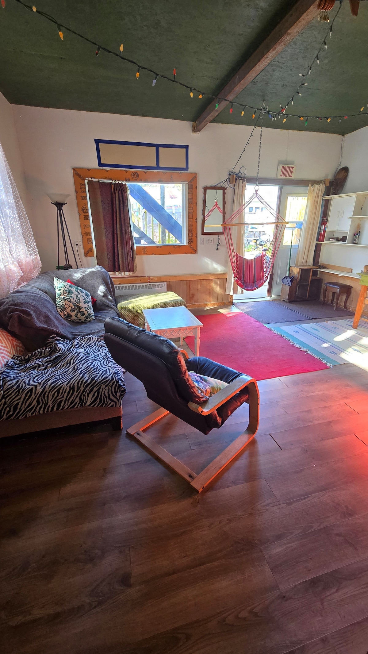 Ce repère familial est 100% autonome et écoresponsable. Il offre plusieurs espaces de détente. Filet d’habitation, coin lecture, causeuse, table à manger, foyer extérieur privé. C'est l’endroit idéal pour apprécier en famille la nature qui nous entourent. Vue sur mer - Foyer extérieur - Jeux extérieur - accès aux sentiers & activités