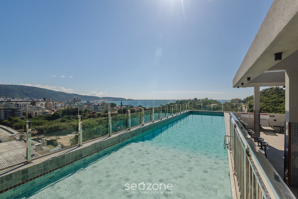 Excelente apartamento mono ambiente com vista panorâmica para o mar e piscina/hidromassagem Ótima opção para as suas férias em Bombinhas Cama box queen size + cama auxiliar de solteiro Ar-condicionado QeF Cozinha completa Smart TV Internet wi fi - "cortesia" Garagem coberta para um carro Capacidade para até 2 pessoas. *TODAS AS AREAS DAS FOTOS SÃO PRIVATIVAS DO APTO. *A PISCINA NÃO É AQUECIDA. *CAMA: COLCHÃO NOVO QUEEN SIZE NOVO MODELO OTOPEDICO EXTRA FIRME (DURO) D40.