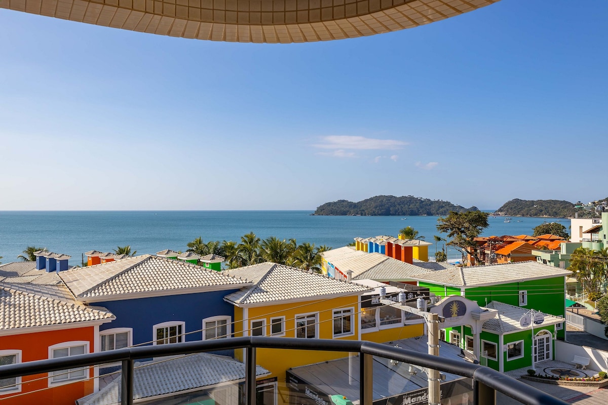 Apartamento com Jacuzzi privativa e aquecida, rede e linda vista para o mar na sacada! Apê de 1 dorm, cozinha completa (fogão, geladeira, micro-ondas, cafeteira, torradeira e utensílios básicos), banheiro e sofá cama na sala. Há 1 vaga de estacionamento gratuito. A propriedade tem pátio amplo, churrasqueiras e piscina (coletivos). Localizada em uma região tranquila. Ficamos próximos das praias: Sepultura, Lagoinha e Retiro dos Padres (5min a pé).E cerca de 15min a pé do Centro de Bombinhas.