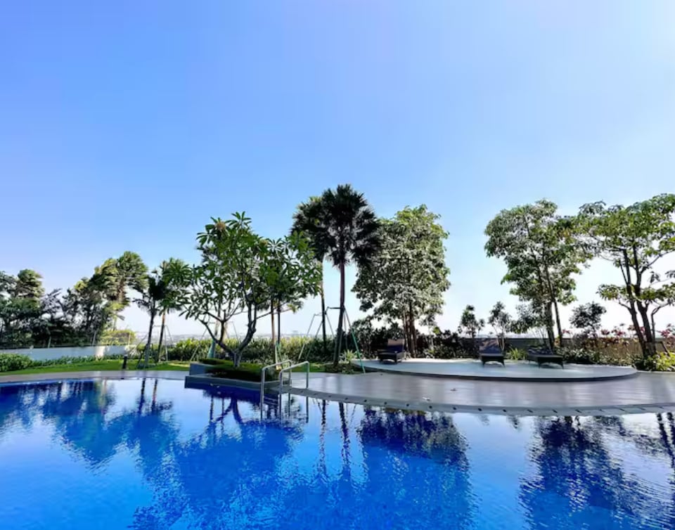 Relax in this calm and stylish apartment, equipped with Infinity Pool and free Gym, located at the top of Pakuwon City Mall, with lots of food variety just a few steps away. Best for your staycation with free Netflix too! Great location with just 30 mins away from the airport, and 15 mins away from the city center. Nearby schools and attractions Park Shanghai San Diego Shopping Street San Antonio Shopping Street Galaxy Mall University: Unair, ITS, Widya Mandala, Widya Kartika