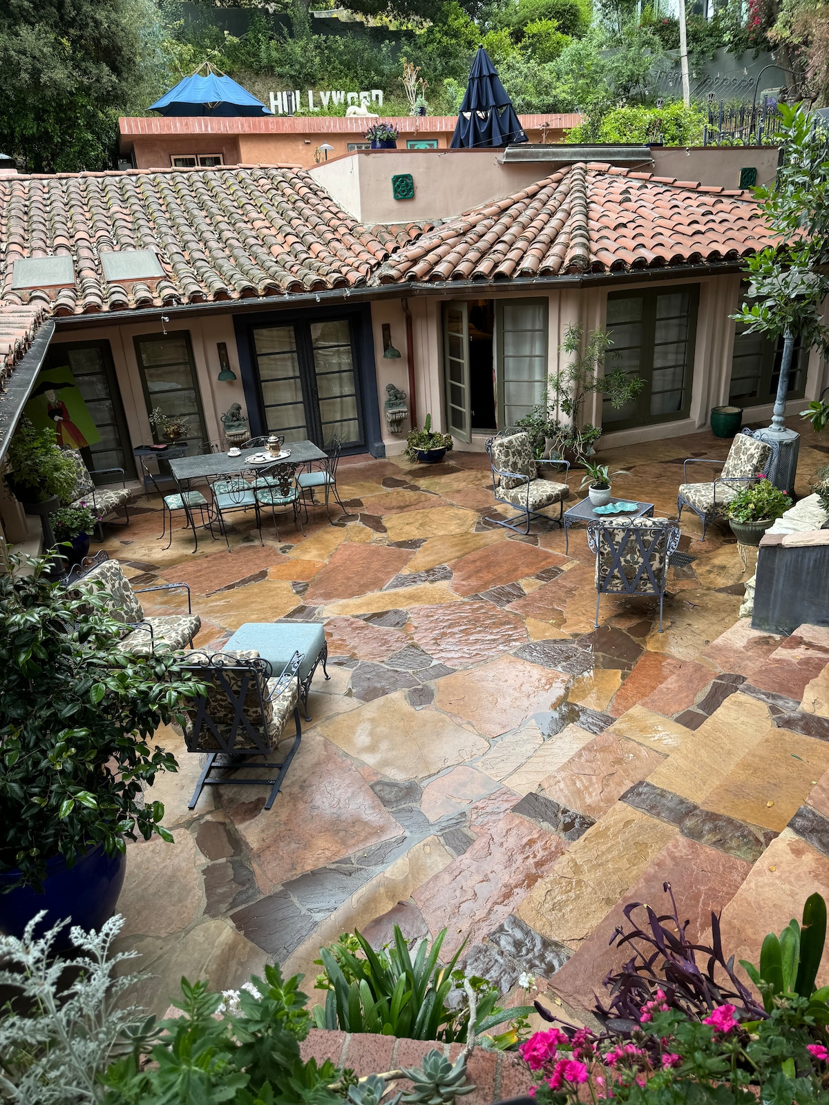 Soothe the senses with the sounds of the water fountain on the patio. Wake up in this serene guest studio featuring a private entrance, key less entry, kitchenette with several complementary amenities, and access to a shared outdoor lounge space with a BBQ dining area. Washer & Dryer available upon request. Offsite, Street parking is plentiful and free.