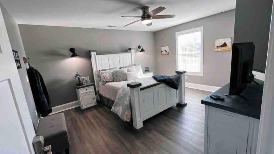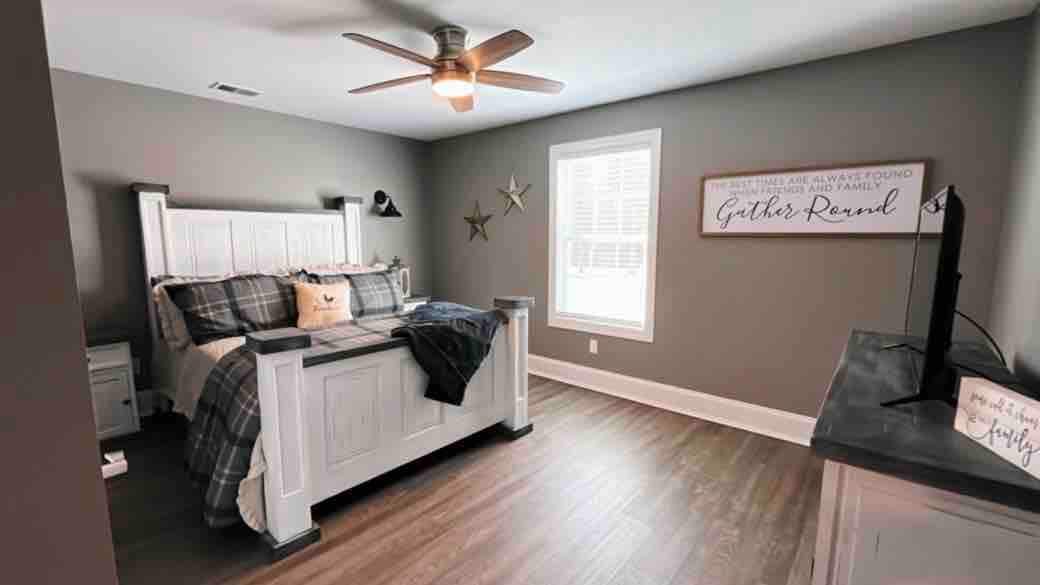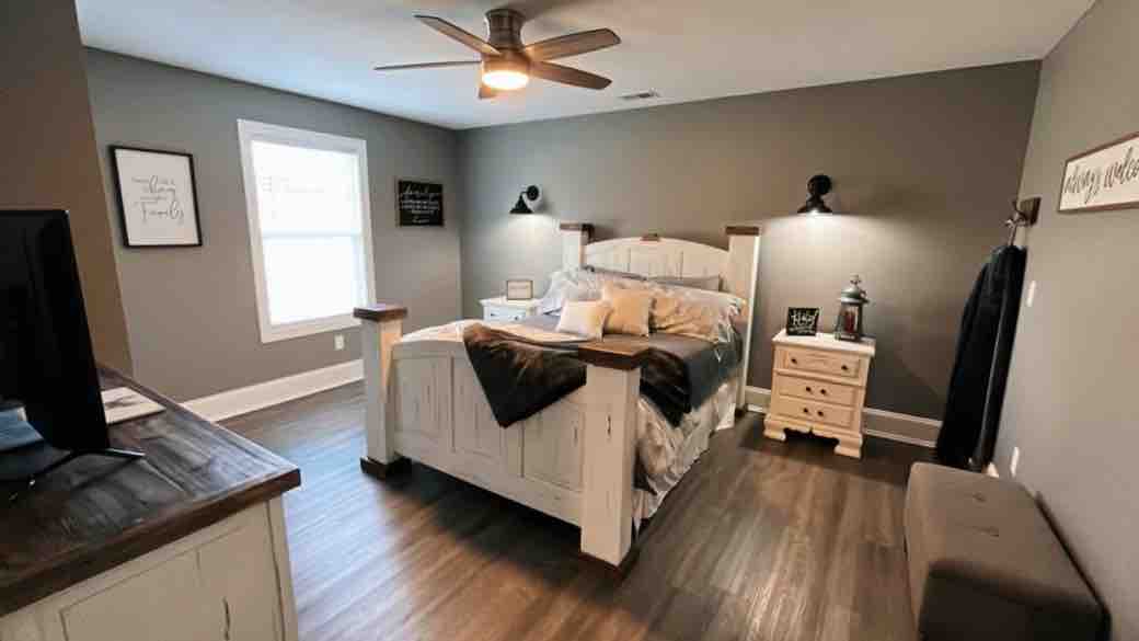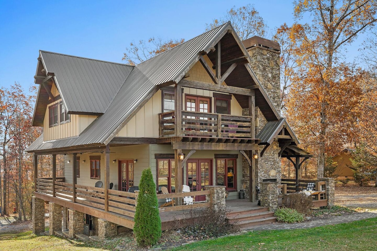 Escape to our serene mountain retreat, 30 minutes from downtown Chattanooga. This spacious home features three master suites with private baths and smart TVs, plus an additional bedroom with a twin daybed and trundle. The open living area has a cozy fireplace and a 65-inch TV. Enjoy stunning sunset views from the screened porch with an outdoor fireplace and 45-inch TV. The fully equipped kitchen and patio with a grill make dining a delight. Parking for four cars completes this perfect getaway.