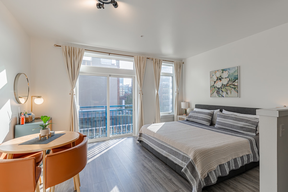 Quiet studio in town. Conventient location, Walking distance to Starbucks and groceries. Our studio has a spacious fully equipped kitchen and full bathroom with a tub. The private patio is one of our favorite features! Enjoy the beautiful views of the olympic mountains and colorful sunsets! We use all non-toxic plant based cleaning products & 'free&clear' laundry detergent to make your stay more comfortable. Aromatherapy with pure therapeutic grade essential oils to give a spa like experience!