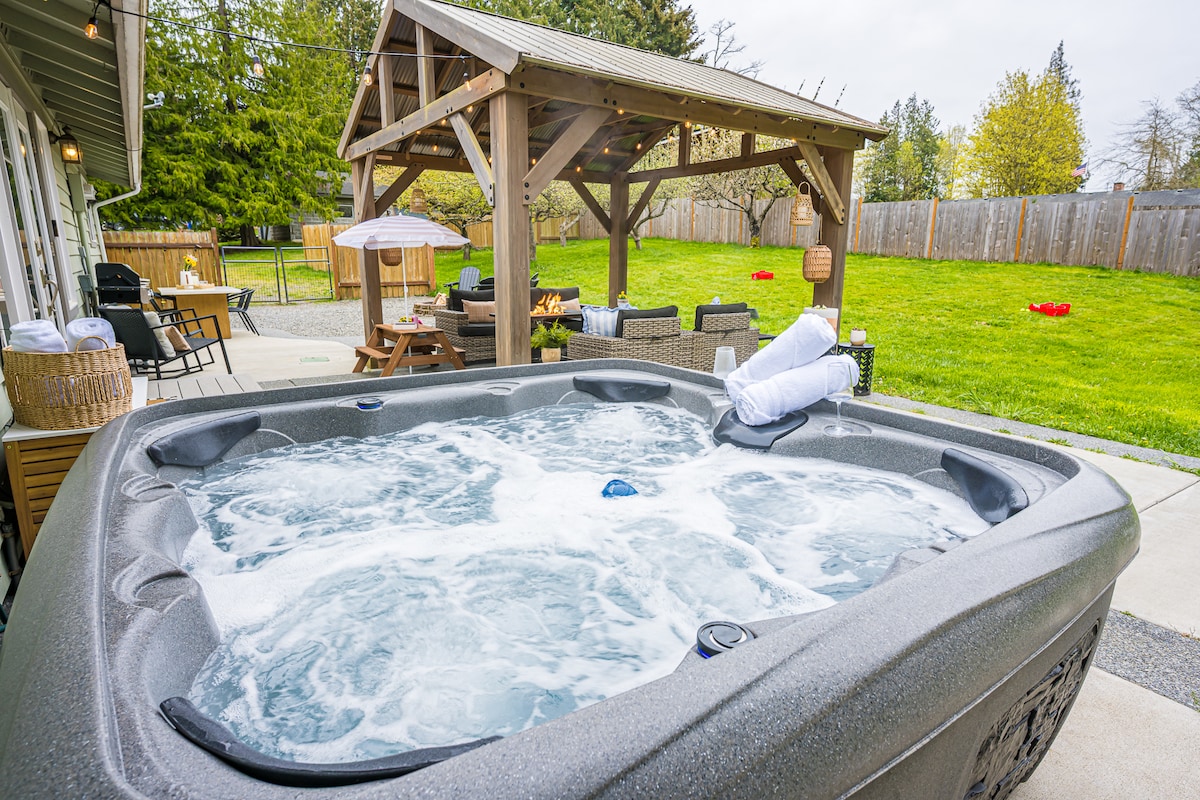 Welcome to Storybook Tiny home in serene Sequim, a cozy forest haven, featuring charming craftsman woodwork, a queen bed, a private bathroom with a new flushable toilet, a kitchenette with a microwave, and a propane fireplace for a snug atmosphere. Enjoy the outdoor patio with a fire pit, relax in the 104-degree hot tub. Observe local wildlife. Just a short drive to Sequim's shops, hiking trails, and near Olympic National Park, the perfect blend of rustic charm and convenience for your getaway.