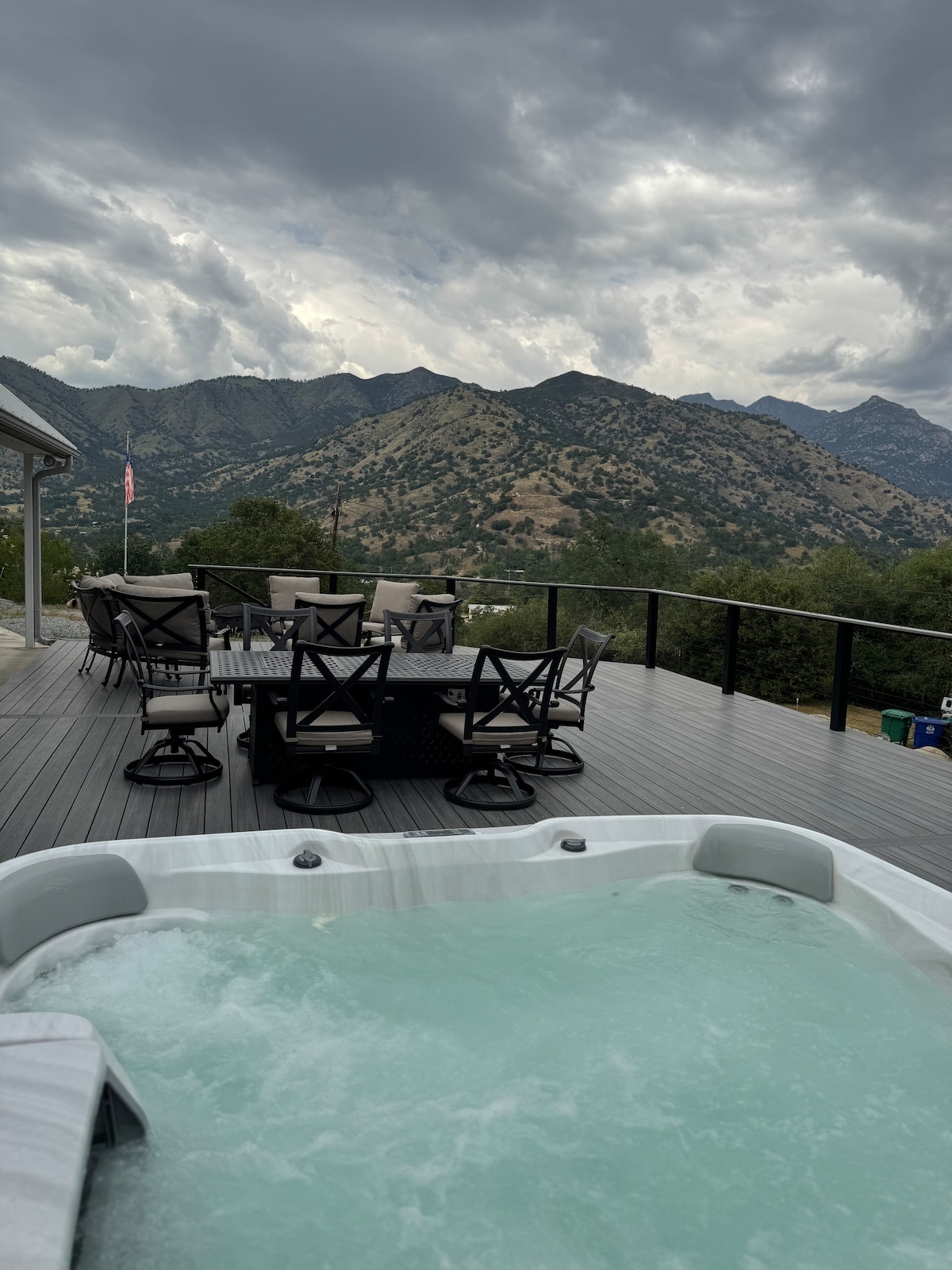 "This was literally the BEST AirBnB we have ever stayed at—no question! The house is in an incredible location..." - Alexis '25 - 4 miles to Sequoia National Park, 5 miles to Lake Kaweah with Views - Hike private trail to log flume on property - Fast WiFi, Hot Tub, EV Charger, Arcade room - 4k HDTVs - Bedroom 1 has king bed, master bath, workspace - Bedroom 2 has 2 full bunk beds, attached bath, a workspace - Bedroom 3 (lower level) has 1 king bed, bathroom, kitchenette and private entrance