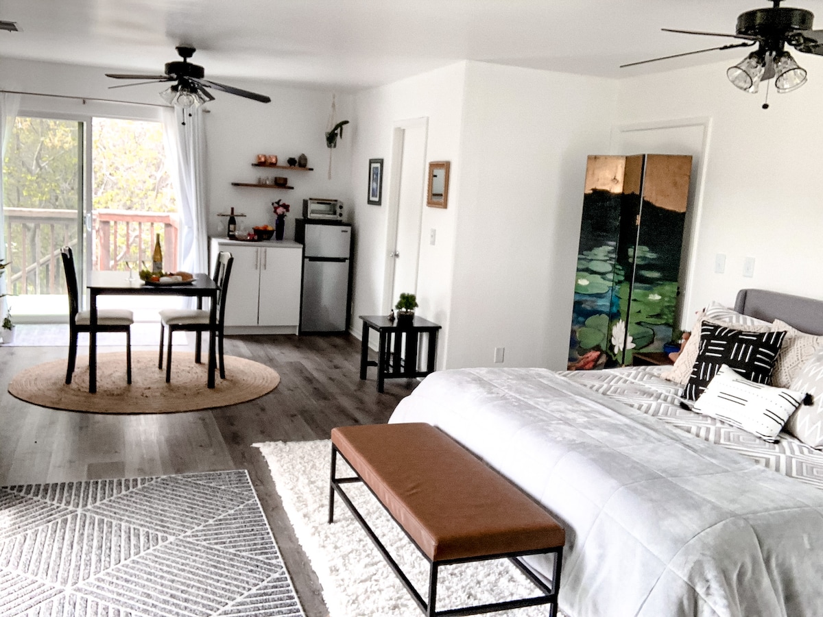 加利福尼亚现代单间公寓,可欣赏红杉景观,带露台