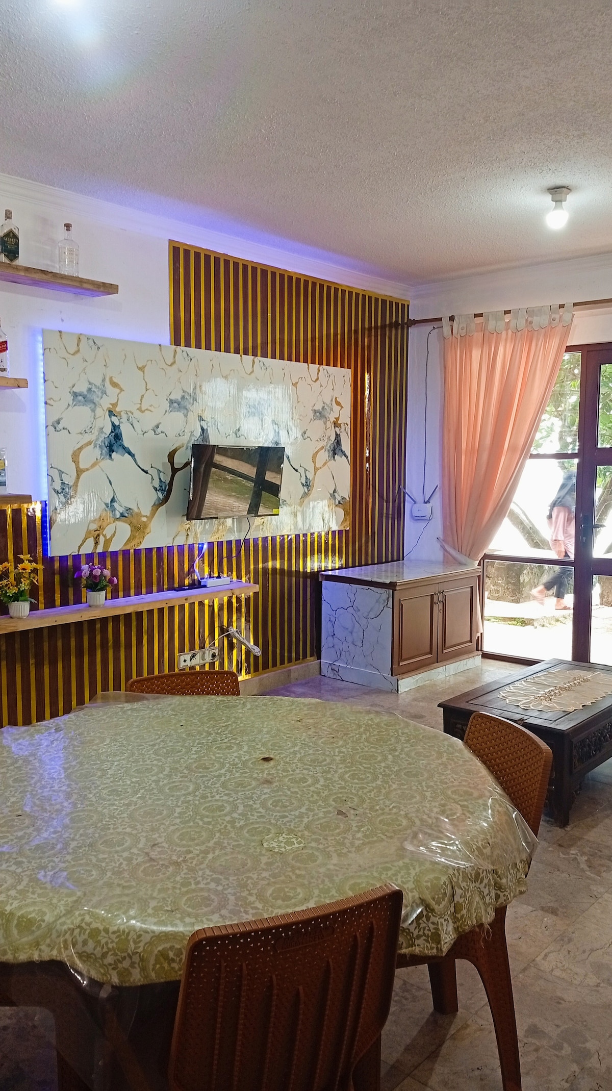 Beach Staycation in anyer beach Marbela with spacious room and complete tools. Max people : up to 8 adults Dining tools Cooking tools ( stove, microwave ) Water heater Tv swimming pool view.