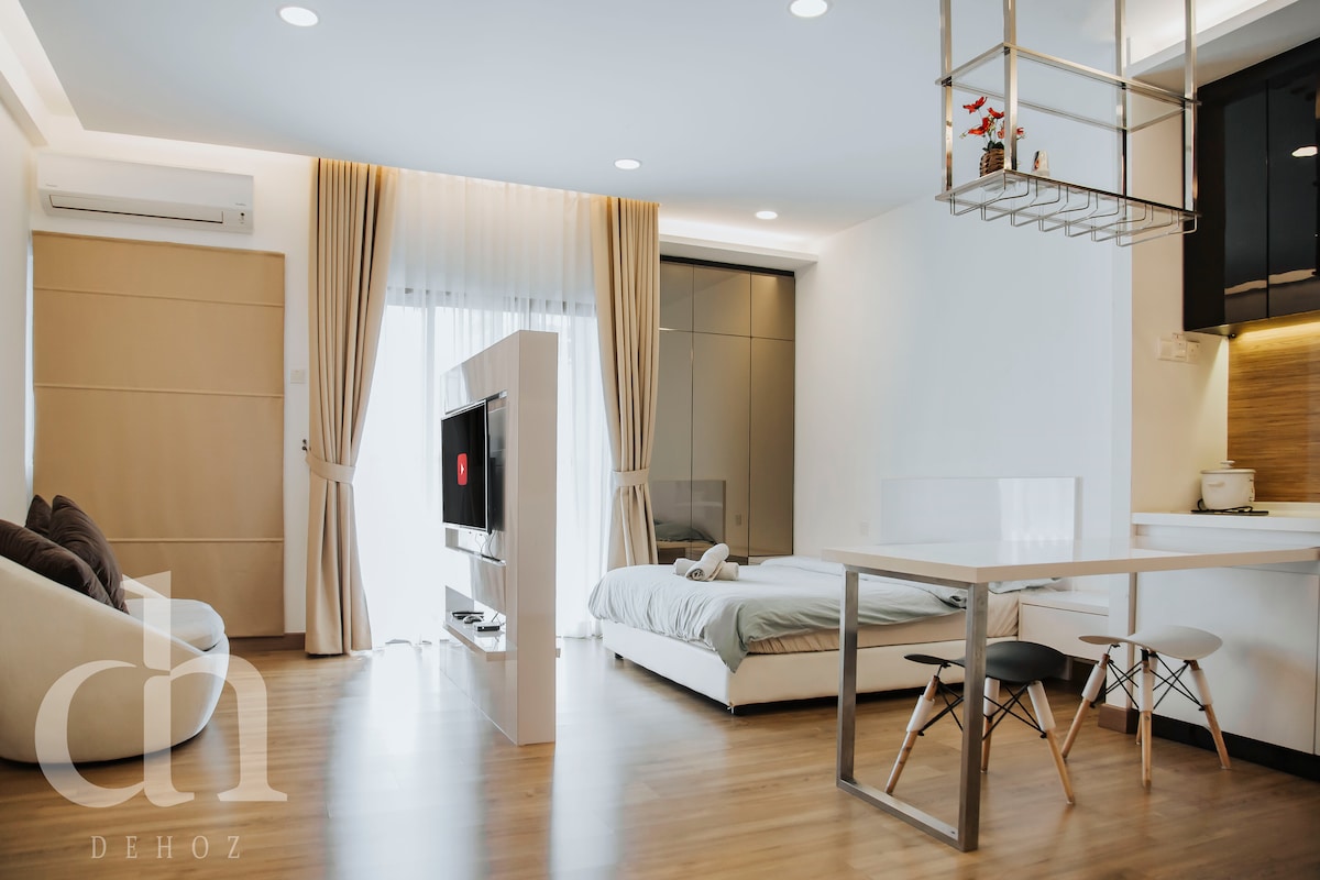 Experience our passionately styled studio apartments, blending farmhouse and beach house aesthetics for a unique retreat. Centrally located, steps from AEON mall, with MRT station just 5 mins drive or 15 -20 mins walks for seamless connectivity. Nearby: Putrajaya and Cyberjaya (20 mins), MEX Highway Toll (7 mins), Farm In The City (7 mins), IOI City Mall (20 mins), The Mines Shopping Mall (15 mins), Stadium Bukit Jalil (17 mins), Hospital Serdang (20 mins), Maeps Serdang (15-20mins)