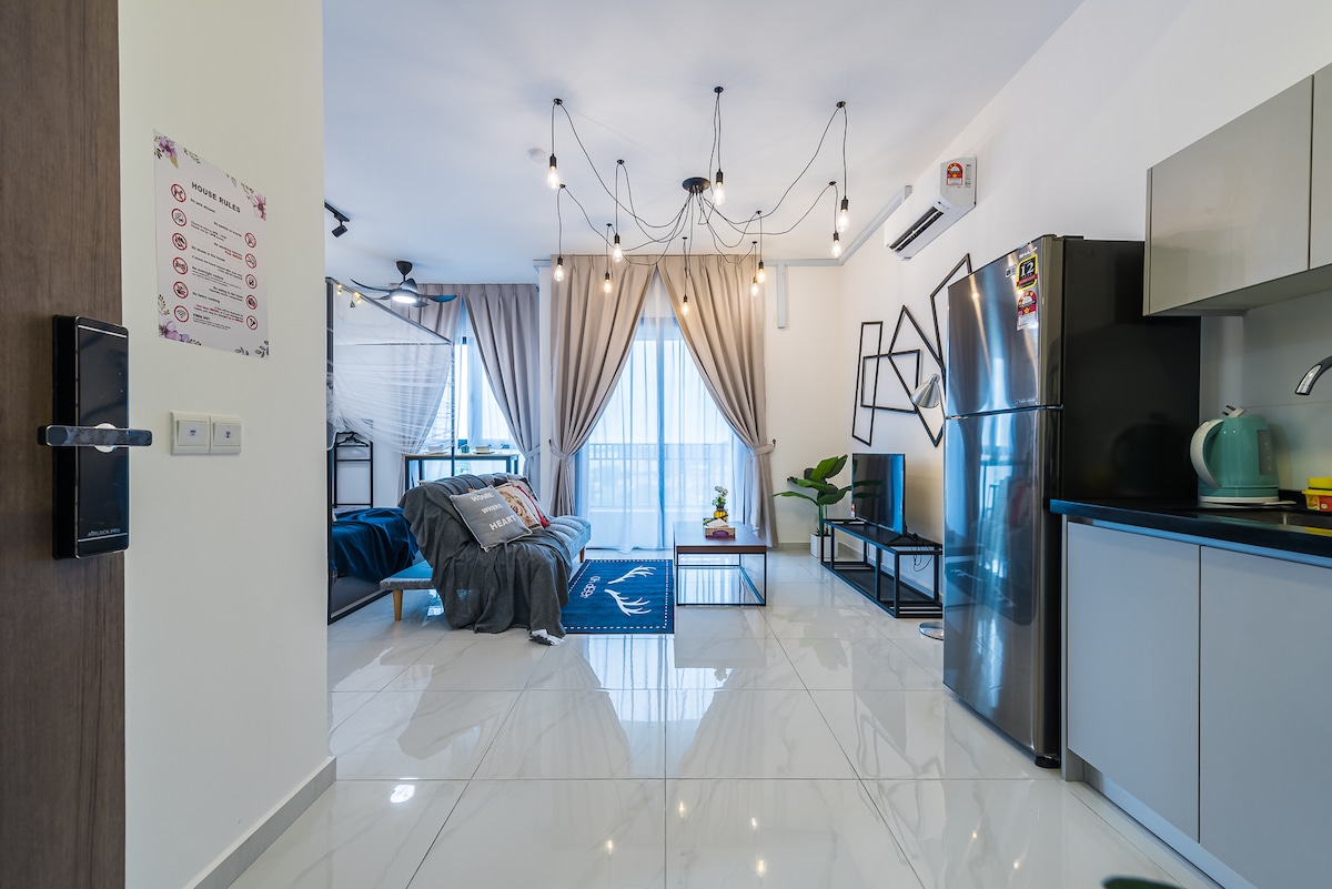 A clean and cozy suite at META Residence — ideal for solo travellers, couples, or working guests. • Fast Wi-Fi & dedicated workspace • Kitchen & 2-in-1 washer/dryer • Smart TV with Netflix • Gym, pool & self check-in • Shared sunset lounge with balcony (6–9PM) • 5-min walk to MRT Putra Permai (PY37) • Near Cyberjaya, Putrajaya & IOI Mall