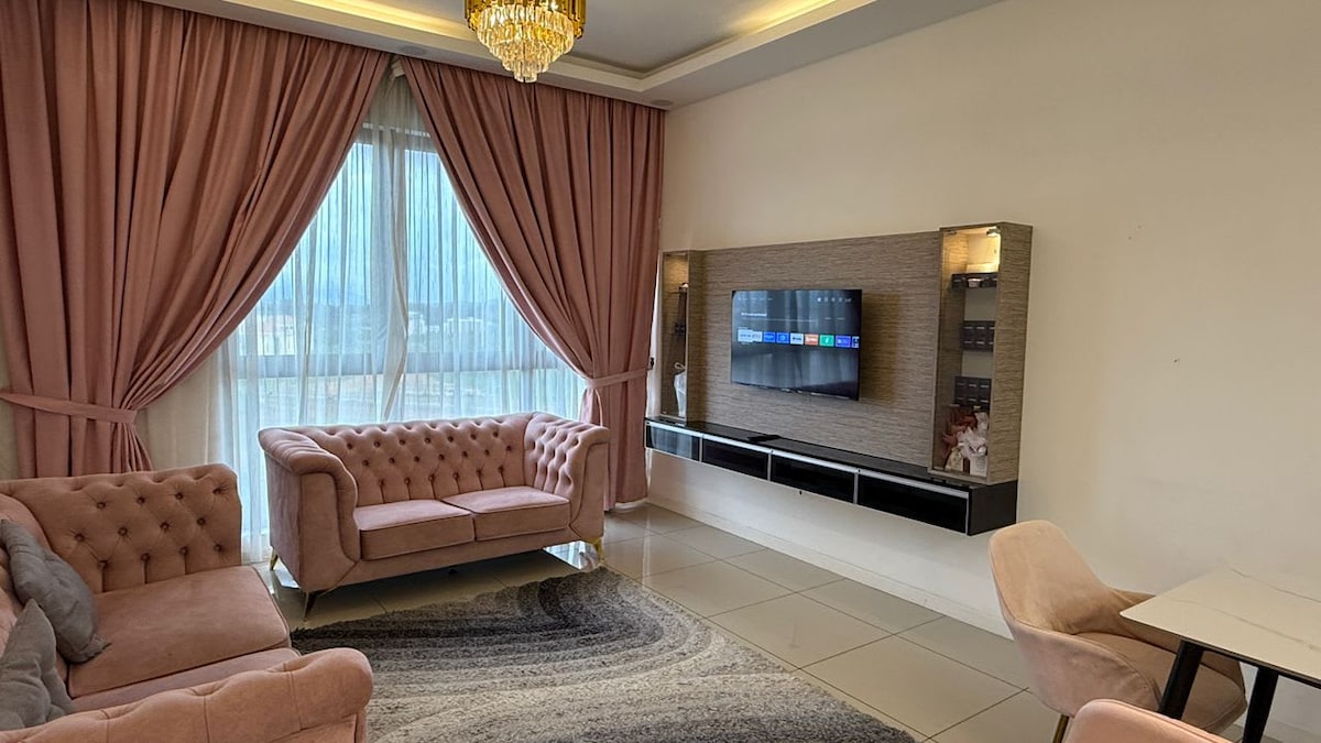 Galleria Equine Park is a brand new service apartment just next to McDonald's and 5 minutes walk to Jusco . You may enjoy facilities like infinity pool, basketball court , gym room , sauna , and etc . Come with 100mbps from TIMEdotcom where you can watch online movie using the TVBOX provided . Suitable for solo traveler , business trip , family and couples . Not for quarantine stay. Will not responsible for cancellation if book for quarantine without inform.