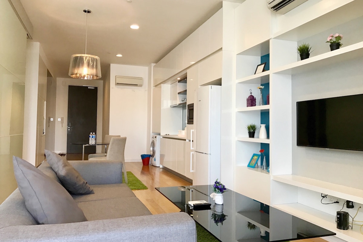 New unit, clean, 24 hours security and convenient area. This premium class serviced apartment is located along Bangsar, linked bridge to LRT Bangsar, 2 min to KL sentral which connected to various public transport. It is located right in the heart of KL city , 5 mins to Mid Valley, NU Sentral Shopping Mall & KL Sentral (An exclusive urban centre built around Malaysia's largest transit hub). Great food at your doorstep (Botanica + Co.)serves delicious cafe and local menu.