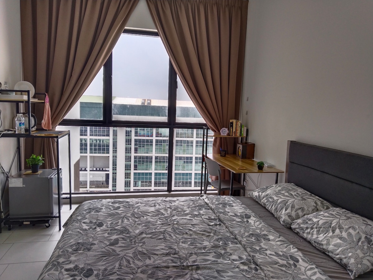 A cosy duplex on the highest floor of the building (Level 21), with a queen bed and a 3-seater sofa. Suitable for both short- and long-term stays. The building is in De Centrum Mall, with shops such as Super7 (supermarket), Mr. DIY, Watsons, and 7-Eleven among others, and facilities like launderettes and a clinic (Poliklinik MyMedik). •Check in time: from 3PM •Check out time: 12PM