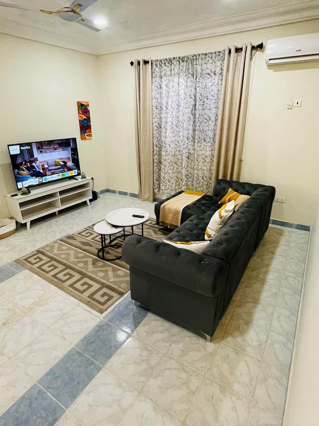 A spacious luxury two bedroom flat in Kerr-Serign . The whole house to yourself.Few minutes drive or walking distance to Senegambia beach, restaurant and clubs.Furnished to a high standard.Living room with air conditioner and two ceiling fans, an open plan kitchen with dining area.En-suite bedroom with ceiling fan and air conditioner and second bedroom with ceiling Fan.Please note room price doesn’t include electricity .Usage will be charged separately depending on your consumption.Many thanks