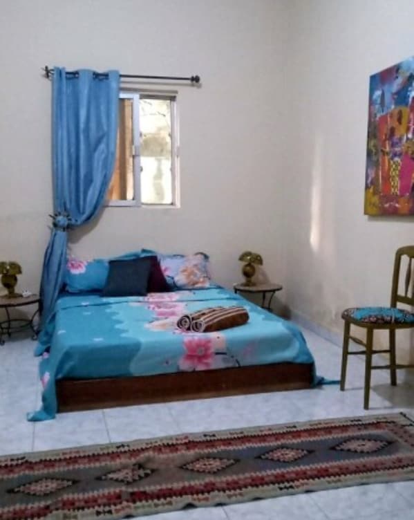 A spacious luxury two bedroom flat in Kerr-Serign . The whole house to yourself.Few minutes drive or walking distance to Senegambia beach, restaurant and clubs.Furnished to a high standard.Living room with air conditioner and two ceiling fans, an open plan kitchen with dining area.En-suite bedroom with ceiling fan and air conditioner and second bedroom with ceiling Fan.Please note room price doesn’t include electricity .Usage will be charged separately depending on your consumption.Many thanks