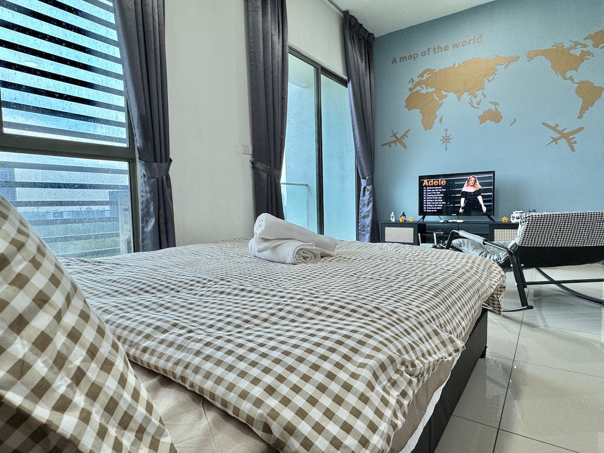 Symphony Tower is a brand new condominium with variety of facilities . Other than swimming pool , gym room , sauna and children playground , the condo also provide basketball court and ping pong room . Nearest attraction : Aeon Jusco Amerin Mall MIECC UPM We provide : - Free parking at premises - Free internet PS: Some items are for reference and photo shooting only,it may not in the unit. Not for quarantine stay. Will not responsible for cancellation if book for quarantine without inform.