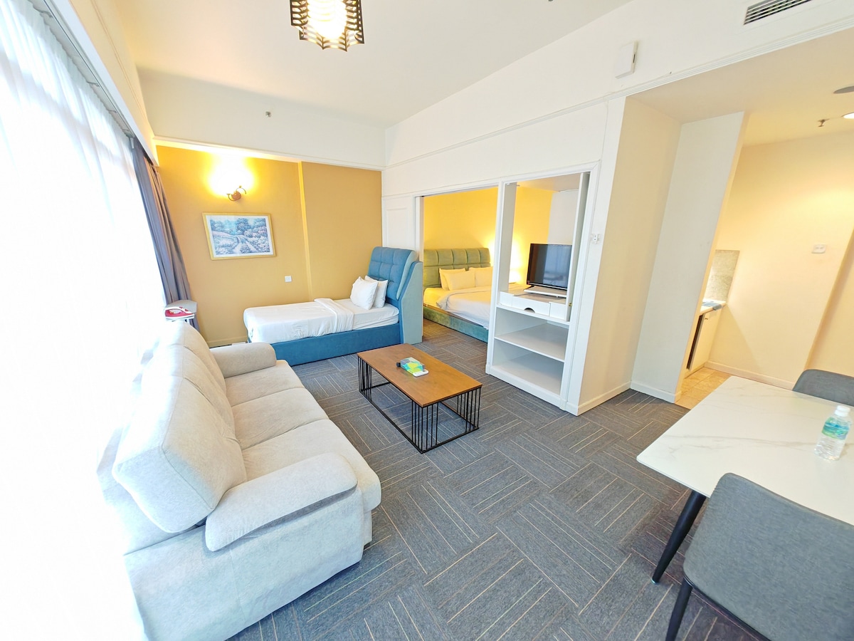 📍Pertama Residency Welcome to my New Bnb - Moonrise City! This studio is newly set up with lots of love, combines contemporary decor with modern amenities and an experience all can enjoy especially Jacuzzi moment with your love & 120” projector screen w/Netflix. This unique place has a style all its own, it offers a cozy, clean, quiet & refreshing stay environment for couples. Come and experience in the new bnb! See you.