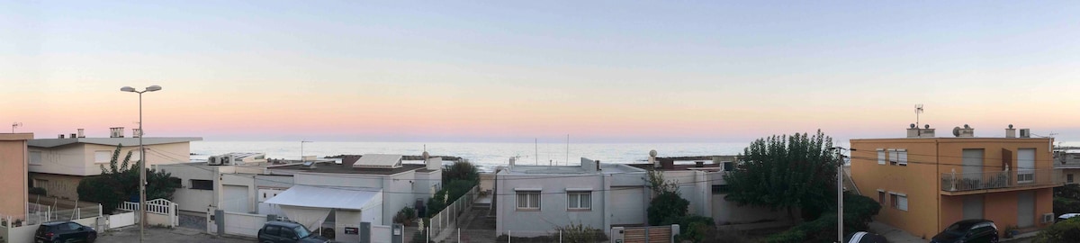 美丽的海景,距离海滩90米,停车场,凉廊,无线网络。