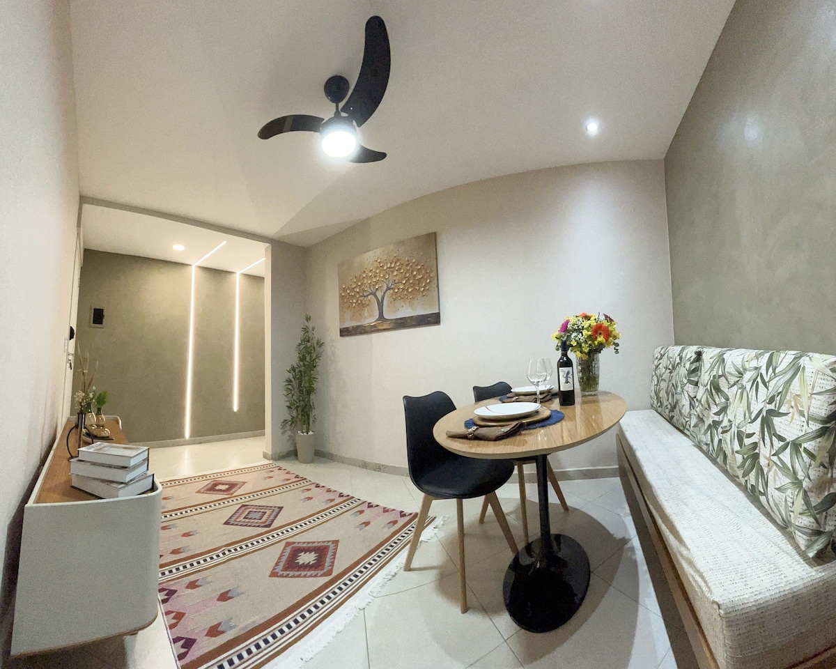 Bem-vindo ao seu cantinho em Vitória! Perfeito pra relaxar ou trabalhar com conforto, em uma área tranquila da cidade. Localização: Perto do aeroporto, UFES, Multivix e a 3,1 km da Praia de Camburi. Conforto e praticidade: Cozinha e área de serviço completas, ar-condicionado no quarto, sala com canto alemão e ventilador. Internet fibra cabeada, self check-in através de QRcode ou facial, câmeras nas áreas comuns e tudo que você precisa pra uma estadia leve e sem preocupações em 6 X sem juros.
