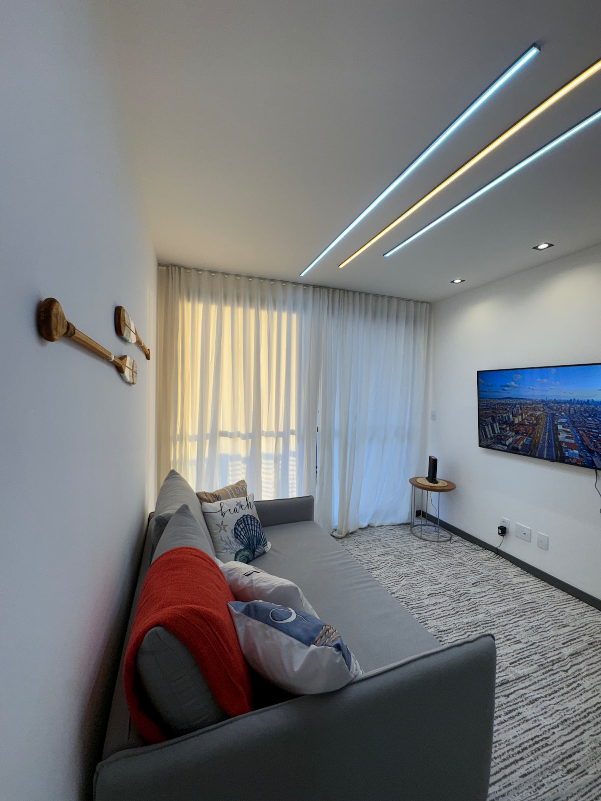Localizado em Jardim Camburi, a apenas 7 km da Praia de Camburi e 4 km do aeroporto, este studio de 38,94 m² oferece conforto e tecnologia. O espaço conta com cama queen, roupa de cama e banho de alta qualidade, máquina de lavar louças, geladeira, adega, smart TV, Alexa, internet e ar-condicionado. A varanda fechada proporciona um espaço extra para relaxar. O edifício possui lavanderia compartilhada OMO (pay per use), Mini Mercado 24 horas , academia moderna, salão de festas e sala de reuniões.