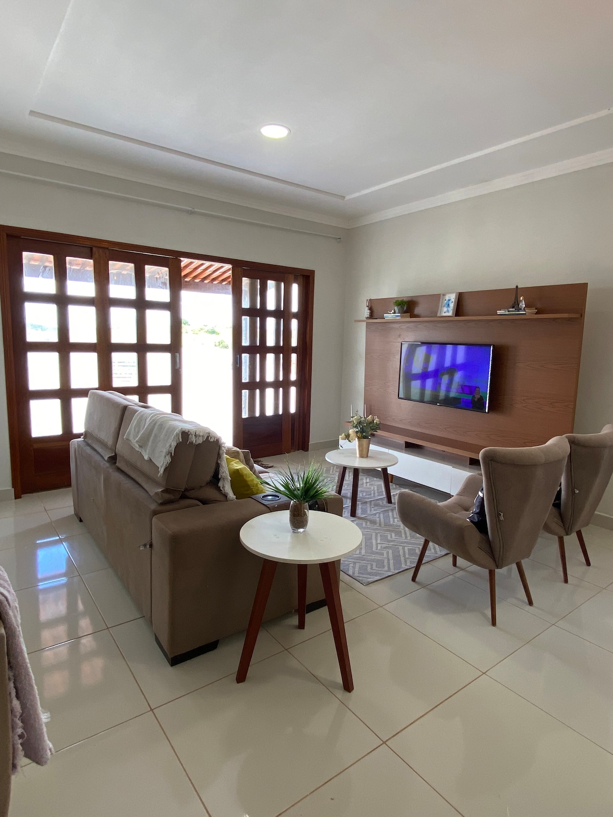 Relaxe com toda a família num ambiente tranquilo, situado no melhor condomínio da região. Uma linda vista em cada quarto, sendo um deles suíte e todos tem ar condicionado, telas e ventiladores. Há uma brinquedoteca/cinema divertida, com muitos brinquedos e um telão. A sala é espaçosa e integrada com a cozinha, espaços que ficam de frente à lareira externa. Na lareira é possível reunir todos em torno de um delicioso fogo de chão, para apreciar um bom vinho! E temos slackline para se divertir!