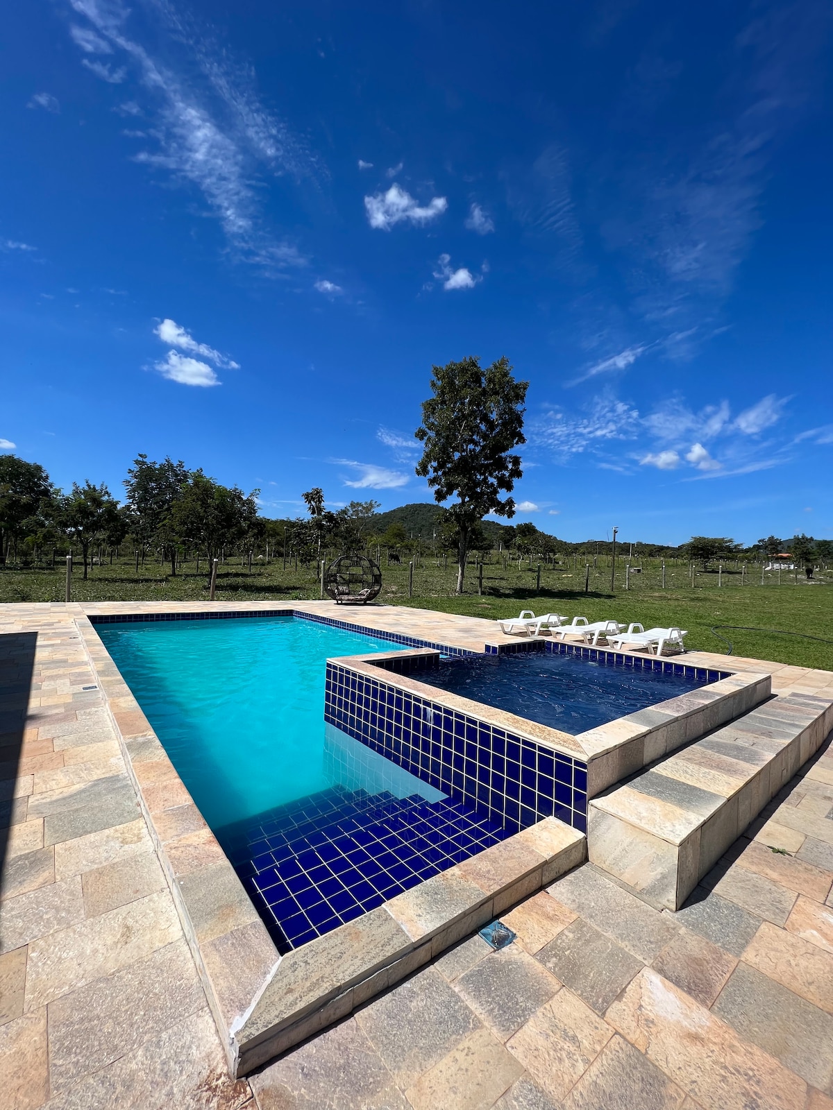 Descubra a incrível sensação de estar imerso na paz e aconchego da natureza viva, a poucos km de Goiânia. Ofereço 4.000 metros de muita luz, verde, pássaros e a simplicidade unica do campo. O rancho é arejado e aconchegante. Embora recém-reformado, já tem bastante personalidade. De lá vemos um por do sol inesquecível e arrebatador. A casa tem dois quartos, dois banheiros, sala ,cozinha, wifi e uma jacuzzi relaxante.Perto do turismo e beleza da fazenda Santa Branca,lugar ideal para ser feliz.