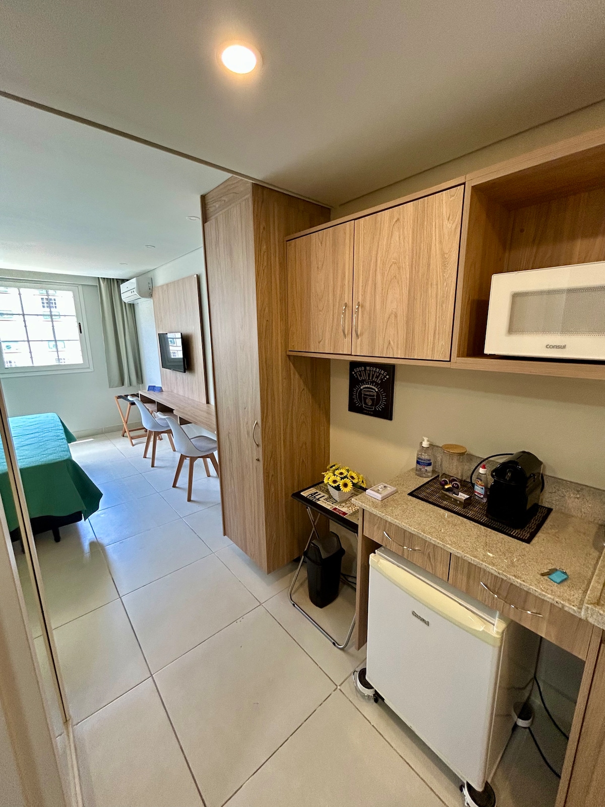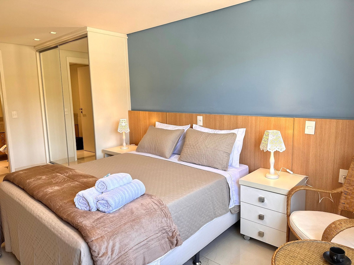 Desfrute de um ambiente calmo, aconchegante, confortável e cheio de estilo. Nosso apartamento de conceito aberto é perfeito para até 4 pessoas, proporcionando todo o conforto e praticidade para uma estadia relaxante. Localizado em um condomínio tranquilo e familiar, é o lugar ideal para quem quer passar um final de semana ou até mesmo uma semana inteira com tranquilidade. 🏳️🌈