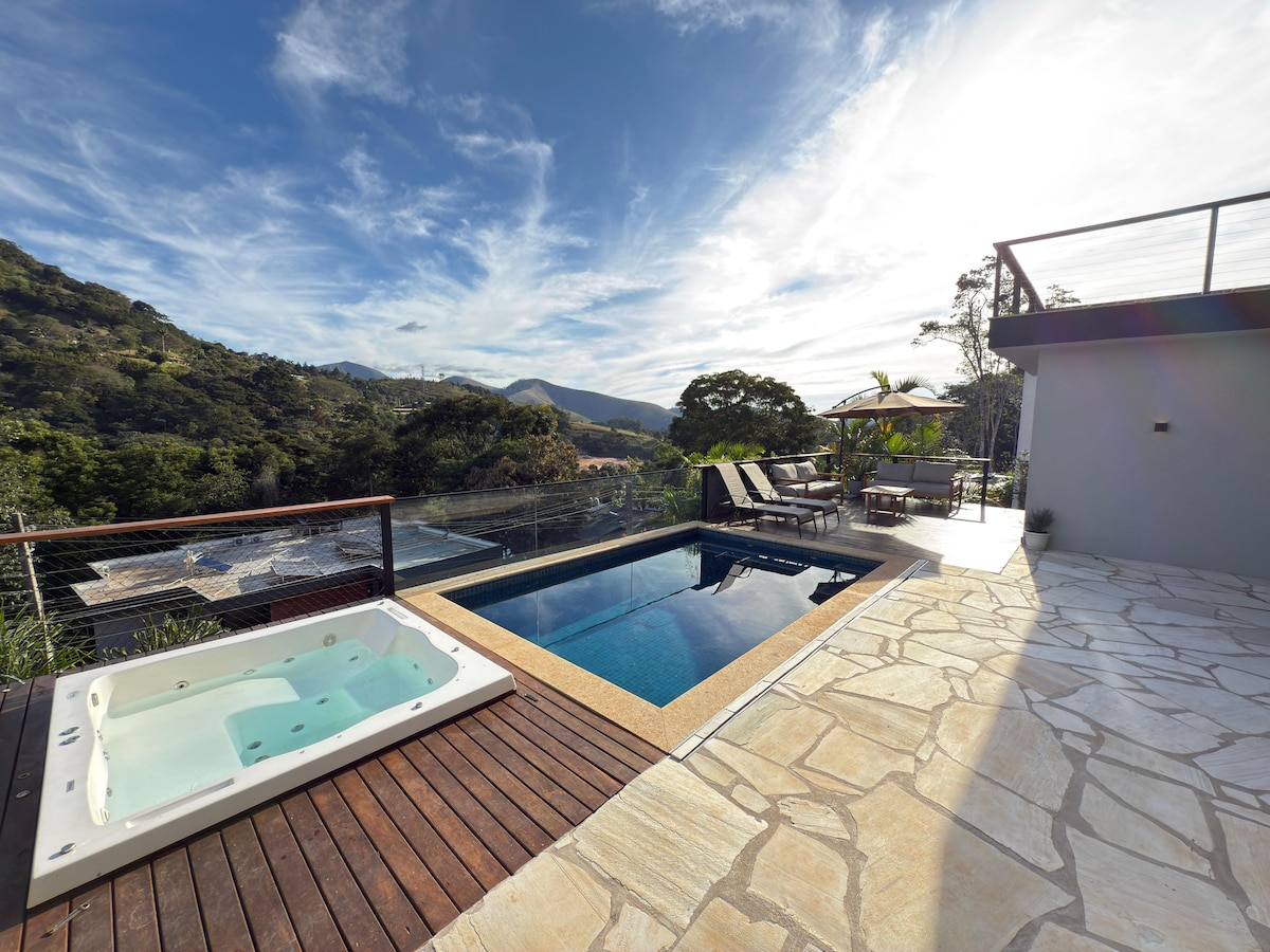 @experiencia.homm traz uma casa com o charme da serra do Rio de Janeiro! Estamos localizados em um condominio, garantindo segurança e tranquilidade aos nossos hóspedes. Temos toda estrutura para uma estadia perfeita, com piscina, sauna, churrasqueira e uma vista linda para as montanhas. Lareira, som ambiente e uma sala bem convidativa para dias mais frios! Temos também forno de pizza a lenha, amplo espaço gramado e uma fogueira na área externa que te levam a curtir o clima serrano de verdade.
