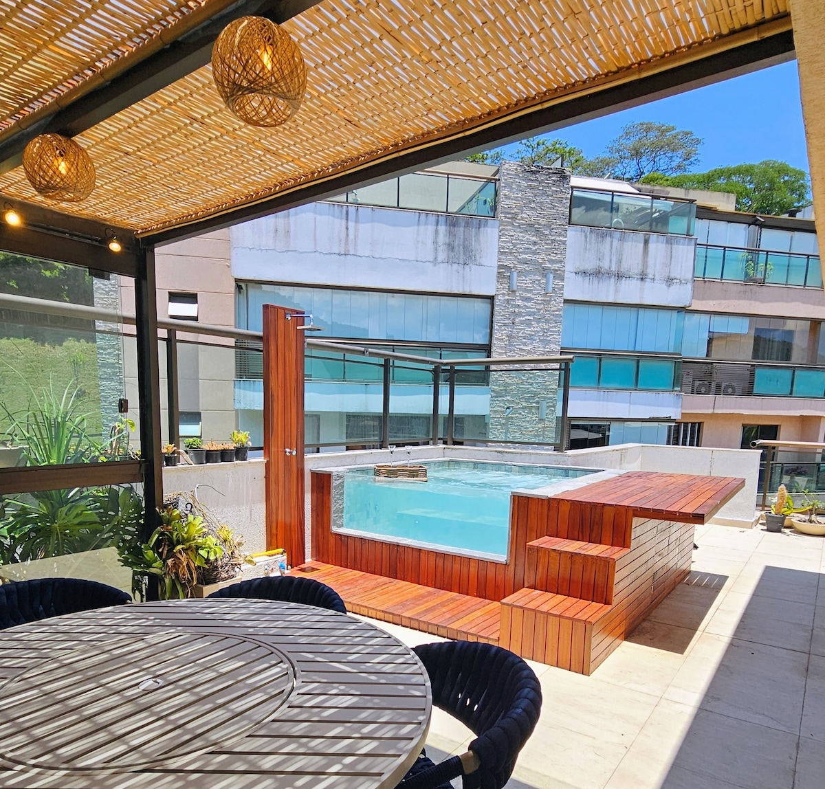 Apartamento de cobertura, recém reformado. Localizado no centro de Itaipava. Decoração moderna e clean, possuindo ar condicionado em todos os ambientes com função de aquecimento. Apartamento possui utensílios basicos de cozinha, copos, taças e jarras. Forno microondas, cooktop, geladeira, cafeteira comum, cafeteira Nespresso. Possui TVs de led, sendo uma de '50 na Sala e uma de '32 no quarto. Na suite finamente decorada, possui um belo banheiro, dotado de banheira de hidromassagem privativa.