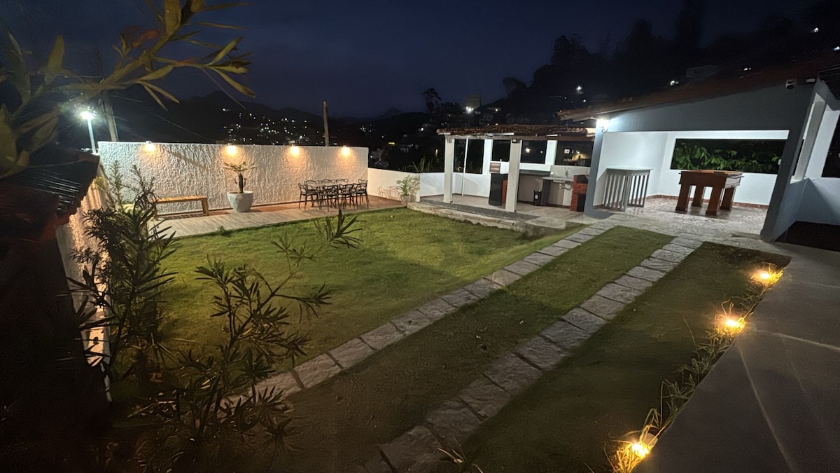 A Cabana da Serra RJ foi pensada para proporcionar aos hóspedes uma experiência única com cinema ao ar livre, hidromassagem, churrasqueira e lareira para os dias frios. Juntamos o máximo de conforto e privacidade para que você aproveite sozinho(a), com seu parceiro ou parceira, em família ou entre amigos. A casa está localizada em um condomínio com academia, quadra de areia, parquinho e lareira de chão. Fica (de carro) a 15 minutos do Centro e 21 minutos do Alto.