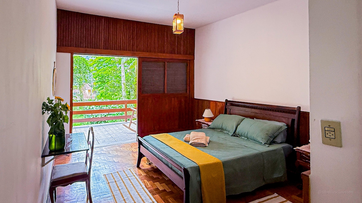 Bem-vindo a um cantinho onde o mundo parece respirar mais devagar. Estamos verdadeiramente no coração da natureza, longe do barulho e da pressa, mas com acesso fácil e encantador. Seu refúgio não é apenas a suíte, mas toda a natureza que a envolve, ar puro e uma vista lindíssima. O acesso se dá por uma rua particular com muito verde, recomendo veículo próprio ou uber.
