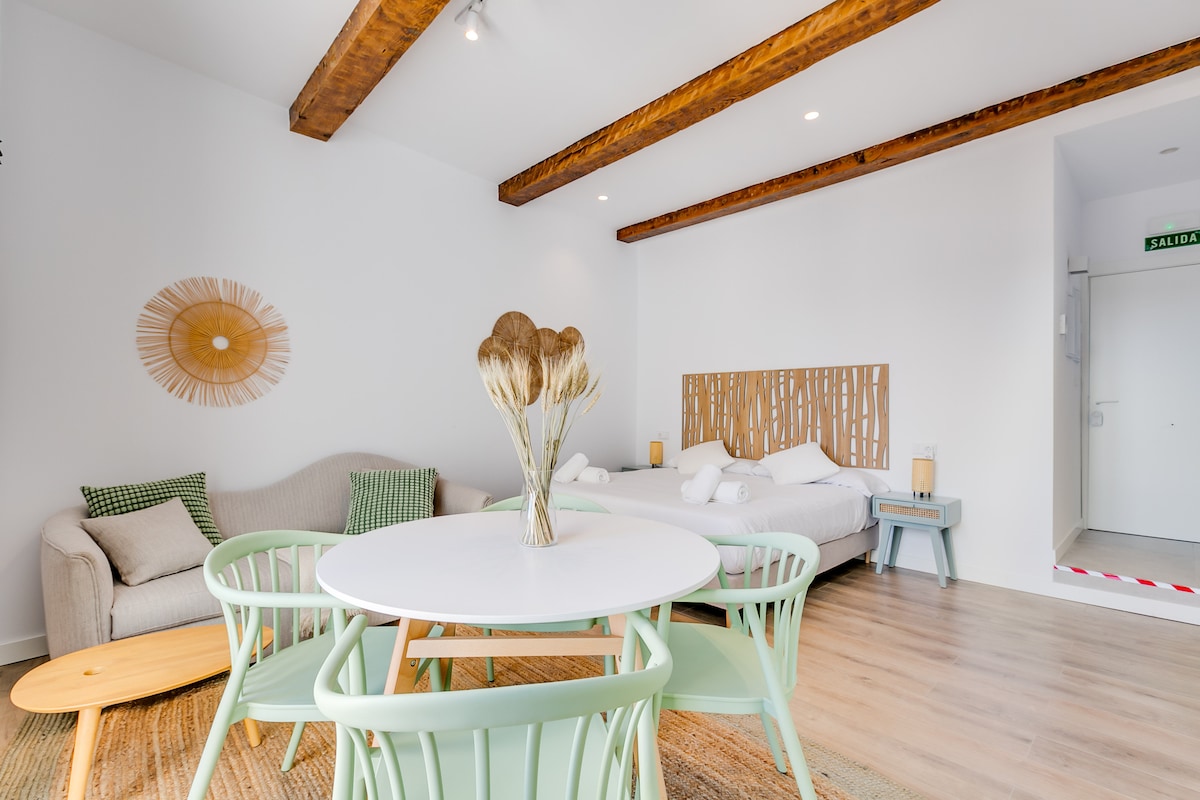Beautiful Deluxe Master Suite, located a few meters from Plaza del Salvador, Plaza del Carmen and Torre de Mangana. This Suite has a main room with a 180 cm wide bed, sofa bed, private bathroom, microwave, toaster, capsule coffee maker, dishwasher and mini refrigerator. From your balcony you can enjoy the fabulous views of the city. Maximum capacity 2 people. Access by elevator. In the building you will find a laundry room with a washing machine at your disposal.